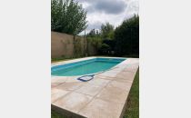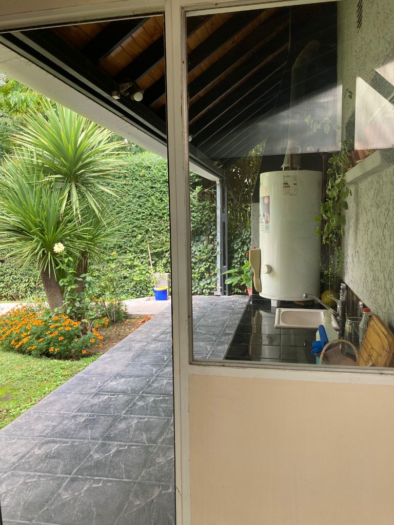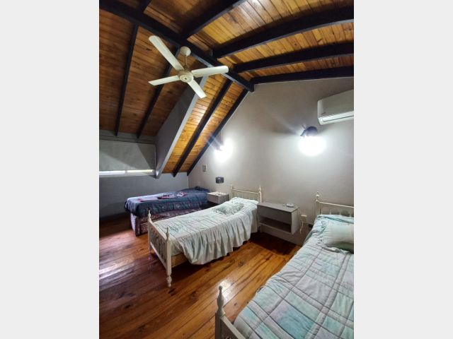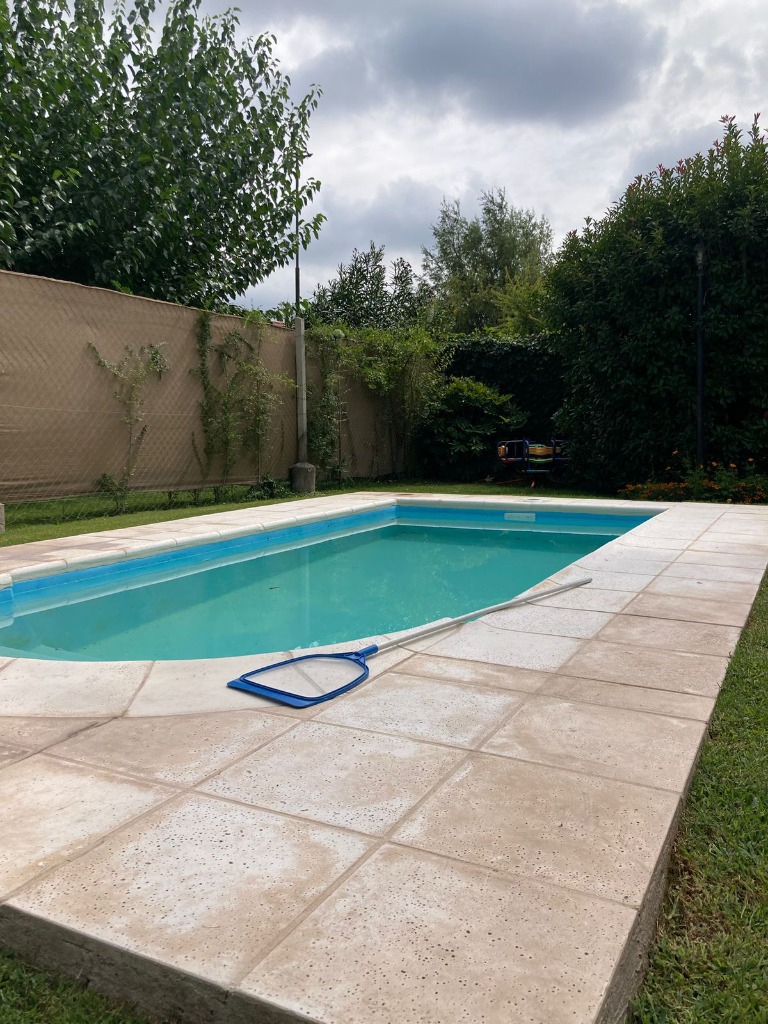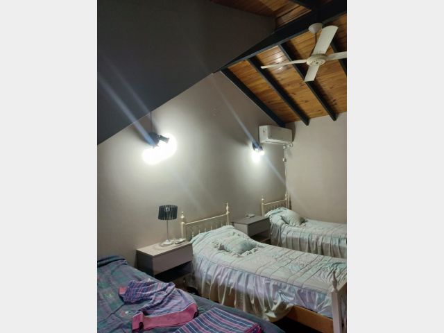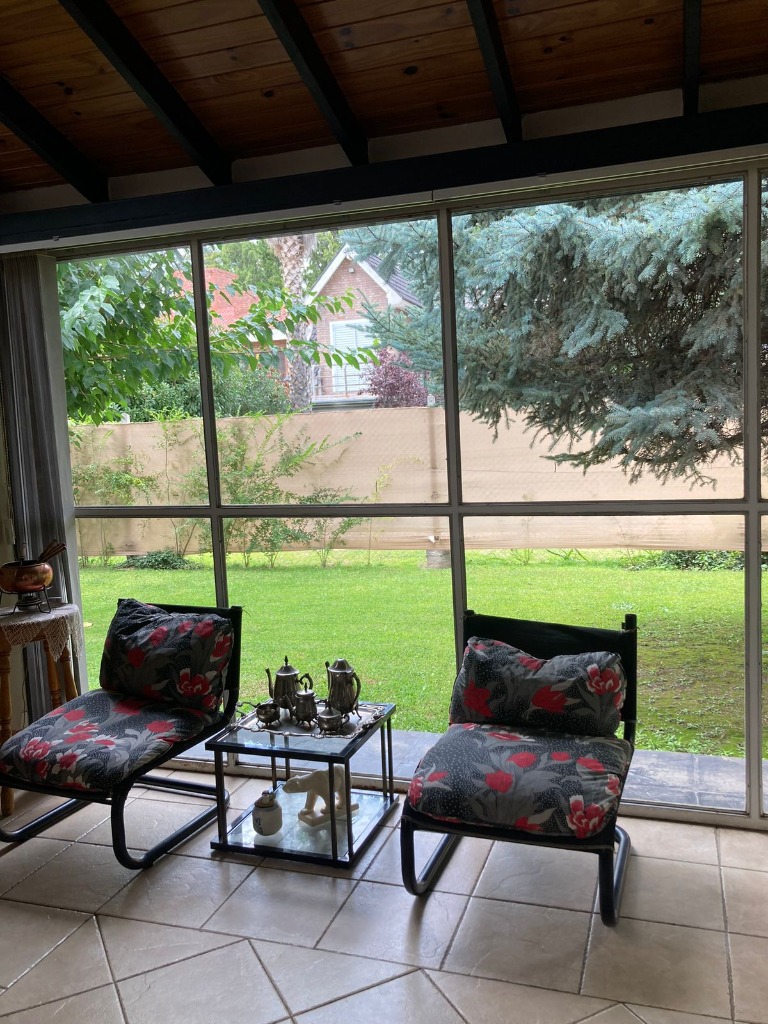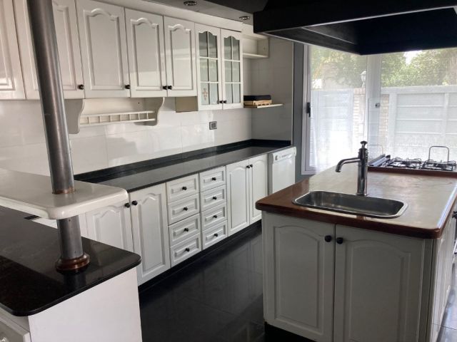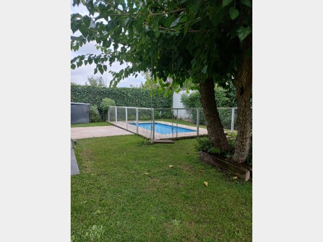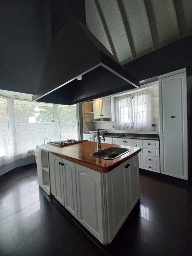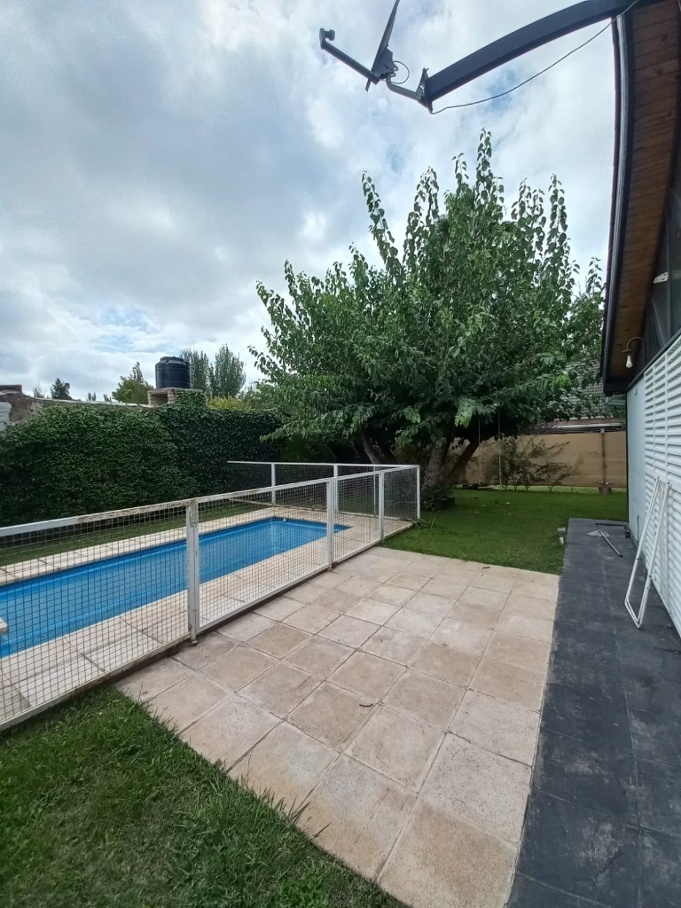 Casa Secundaria. Posee tres dormitorios uno en planta baja, todos con sus respectivos placares. Cocina: independiente con muebles de cocina en melamina, con bajo mesada y alacena. Estar living comedor integrado con ventanales quedan al jardín. Posee piscina con cerco para seguridad.