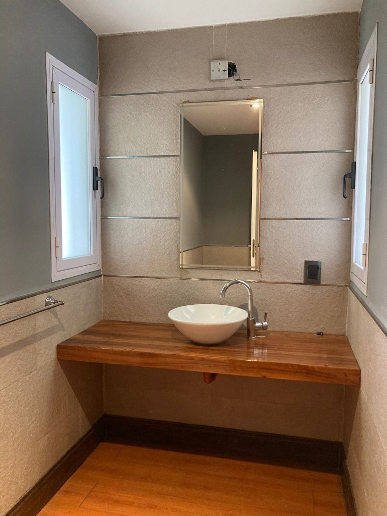 En la planta alta se encuentran dos habitaciones de buen tamaño y grandes placares laqueados, baño principal con ante baño. En planta alta se encuentra un gran soom que balconea al living y a la cocina como detalle principal.