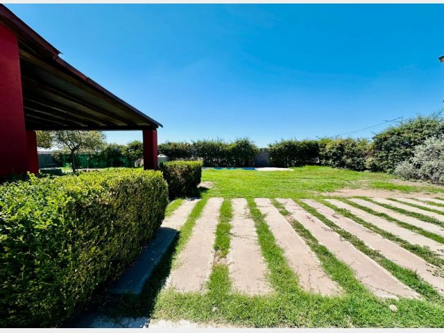 * Piscina y jardín parquizado con riego por aspersión