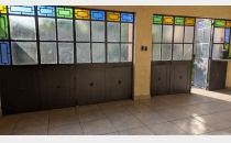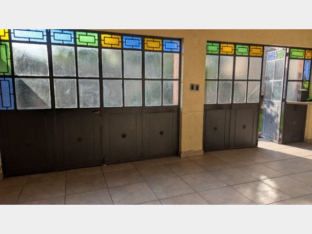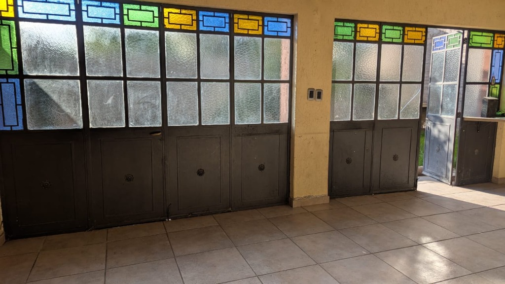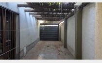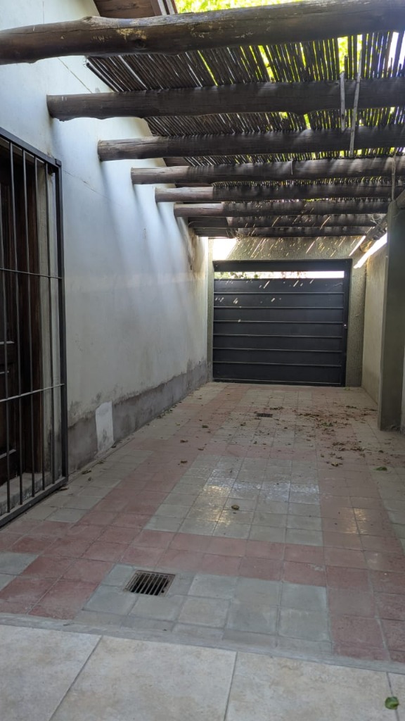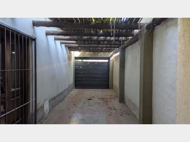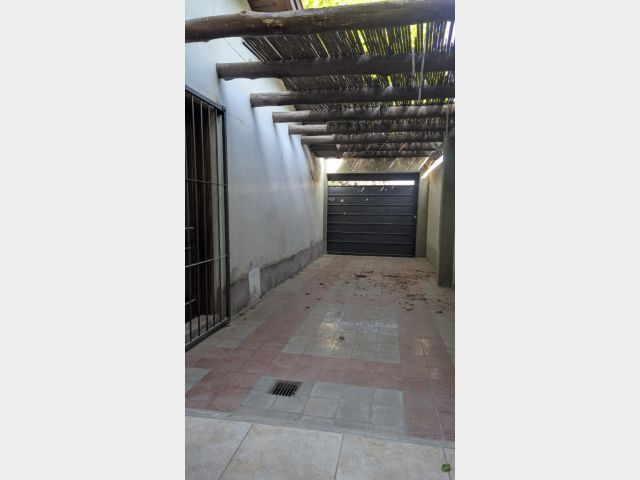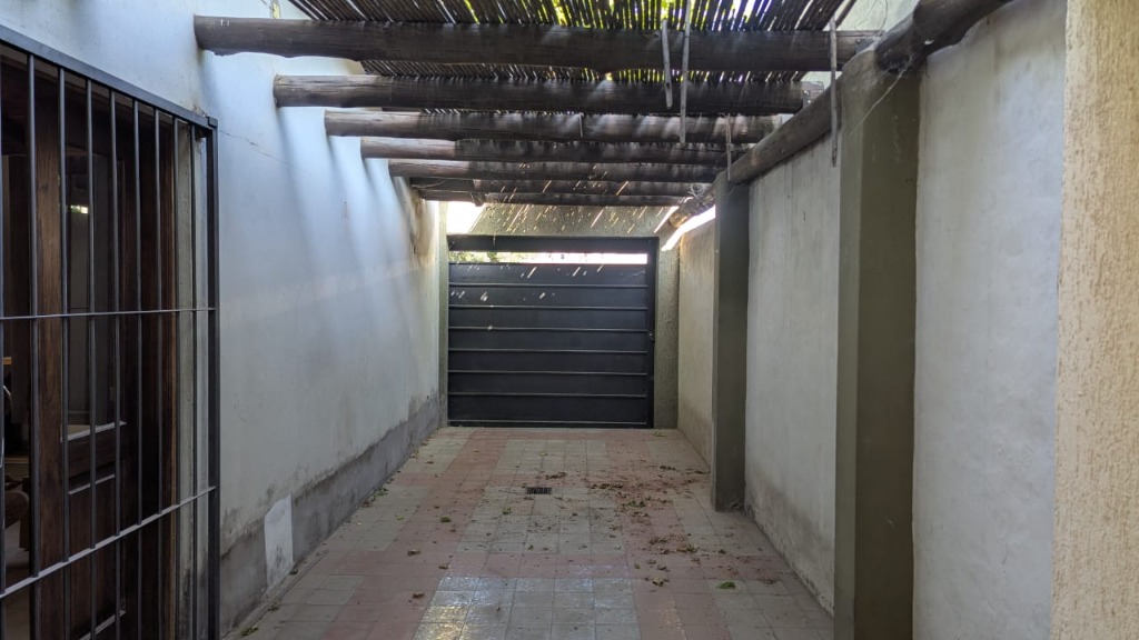 Cochera pasante para dos vehículos, con portón corredizo.
