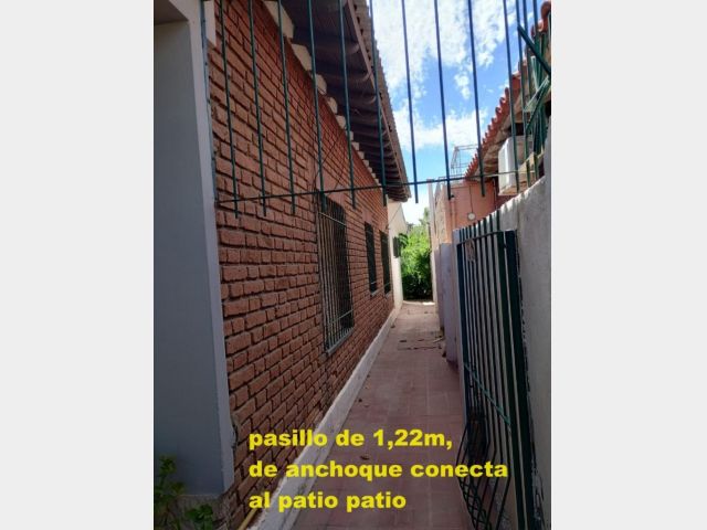 - Al costado un pasillo de 1,22m de ancho que conecta al patio, un tinglado techo zinc de 23m2.