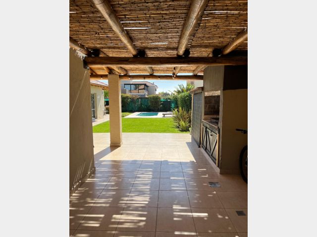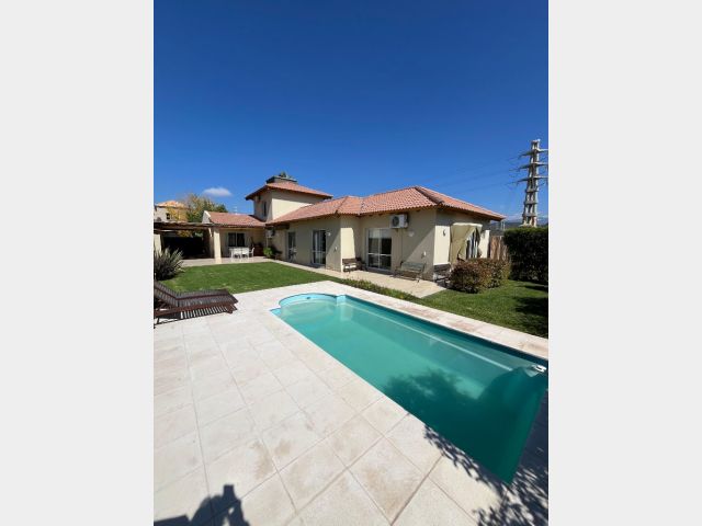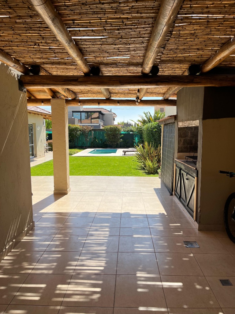 En planta baja se accede por un hall de acceso que comunica con el estar principal con salida a la galería y al jardín, comedor con estar diario y cocina integrada, con salida también a la galería, lavadero independiente con patio de servicio, 3 dormitorios, el principal en suite con vestidor y baño, y otro baño completo para los otros 2 dormitorios, cochera techada para 2 vehículos, jardín y piscina.