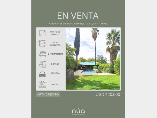 Casa céntrica ubicada sobre Av. El Libertador, emplazada sobre lote de 1067 m² con amplio parque arbolado y pileta.