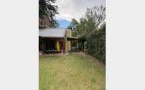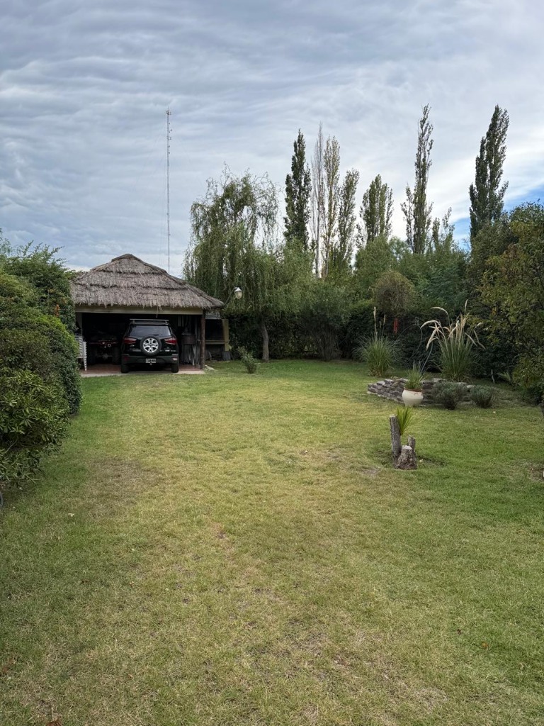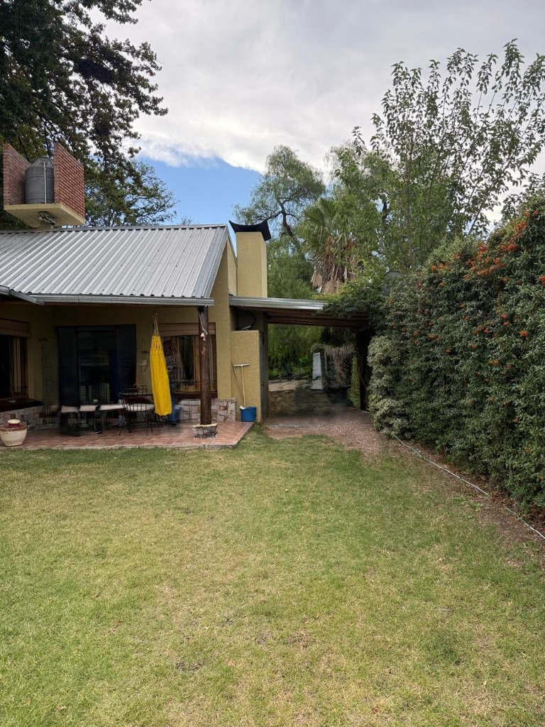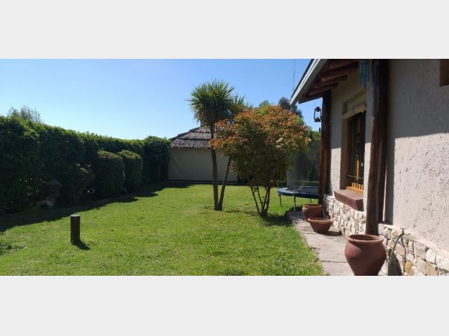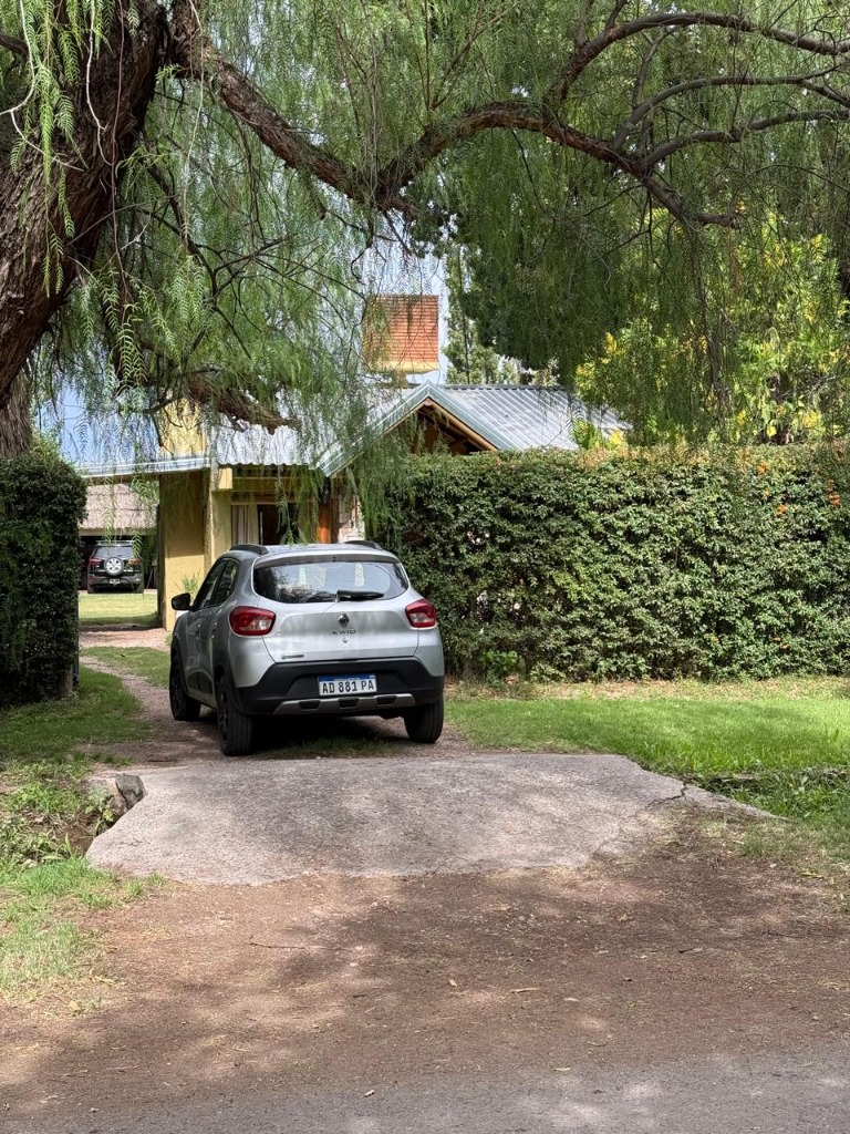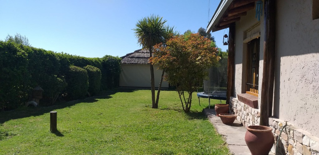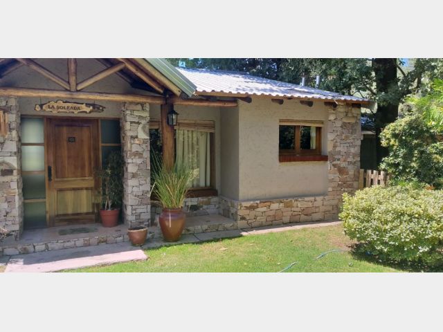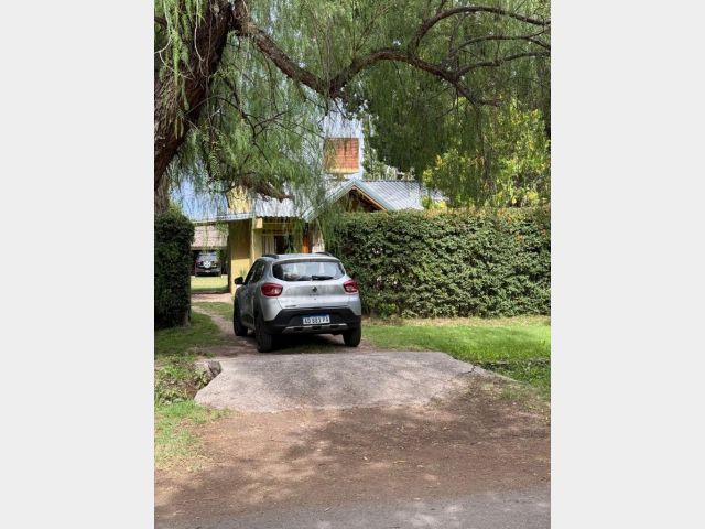 Casa ubicada en un entorno natural, con una superficie total de 585 m² y 120 m² cubiertos. El diseño exterior destaca por su fachada de piedra y madera, rodeada de jardines y vegetación, lo que proporciona un ambiente tranquilo y agradable. La propiedad cuenta con dos dormitorios y un baño, distribuidos en espacios funcionales. El living incluye una chimenea, aportando calidez al ambiente, y está acompañado de ventanales que permiten vistas al exterior. La cocina está integrada y equipada, facilitando la vida diaria. El amplio jardín ofrece áreas verdes ideales para actividades al aire libre.