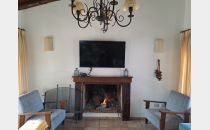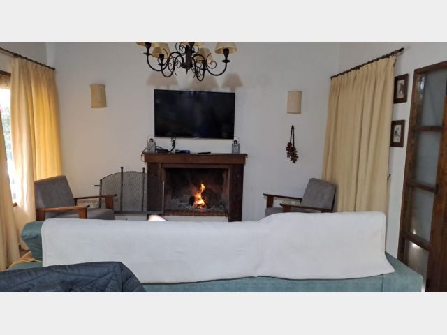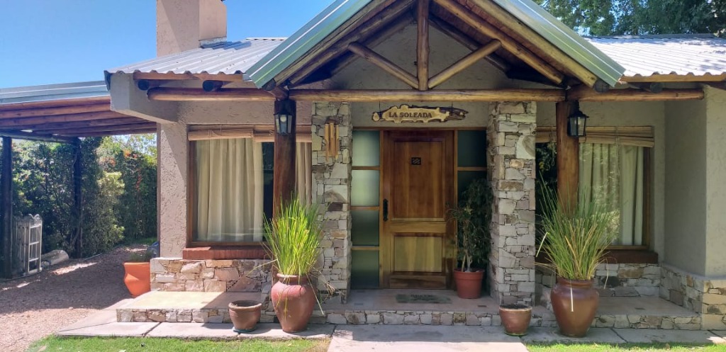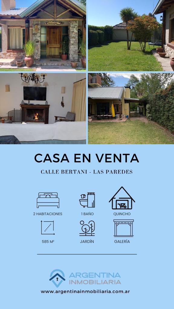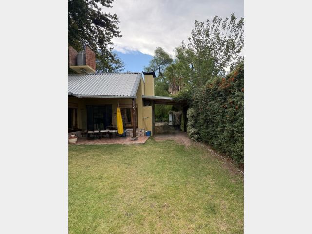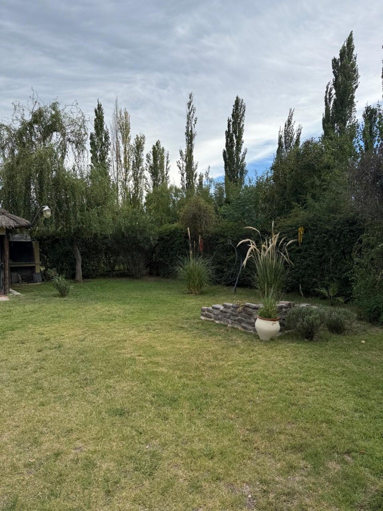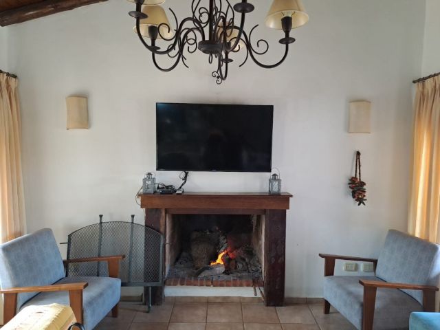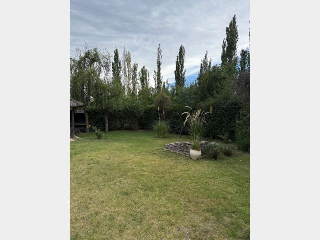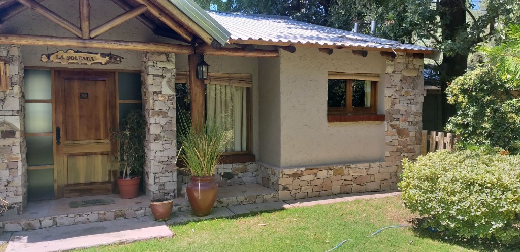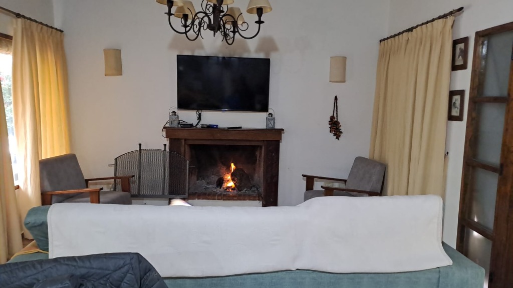 Casa ubicada en un entorno natural, con una superficie total de 585 m² y 120 m² cubiertos. El diseño exterior destaca por su fachada de piedra y madera, rodeada de jardines y vegetación, lo que proporciona un ambiente tranquilo y agradable. La propiedad cuenta con dos dormitorios y un baño, distribuidos en espacios funcionales. El living incluye una chimenea, aportando calidez al ambiente, y está acompañado de ventanales que permiten vistas al exterior. La cocina está integrada y equipada, facilitando la vida diaria. El amplio jardín ofrece áreas verdes ideales para actividades al aire libre.
