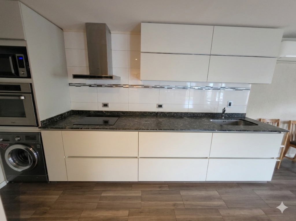 Cocina premium: Equipada con amoblamientos de alacena y bajo mesada de diseño. Incluye horno empotrado, anafe eléctrico y extractor.
