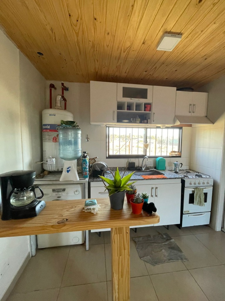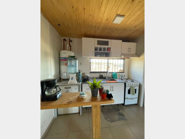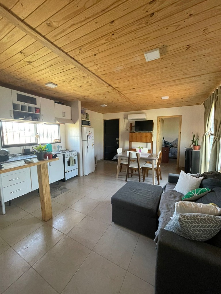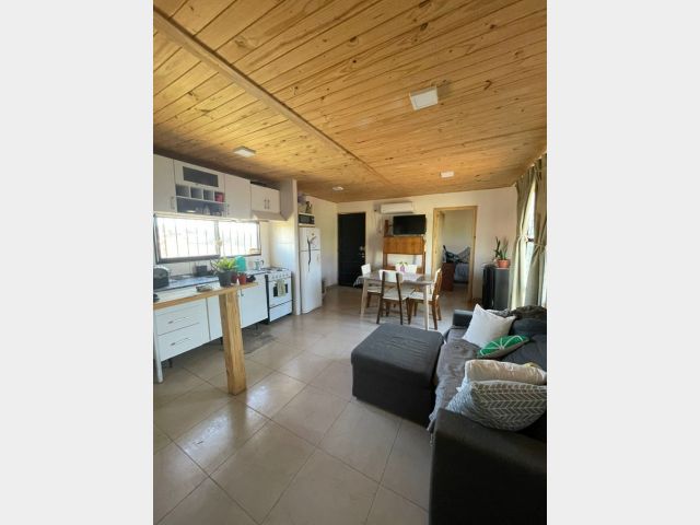 Living comedor con cocina integrada completa.