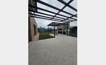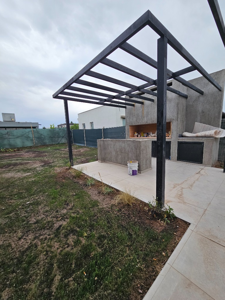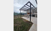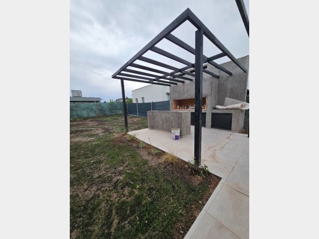 Cochera doble con pérgola metálica.