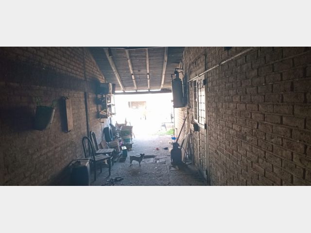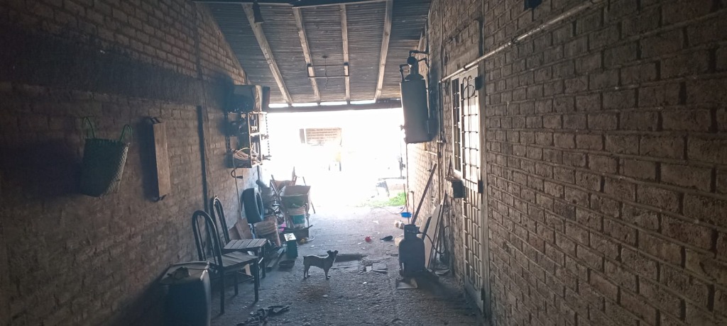 * Cochera cubierta, con piso de hormigón y techo de madera.