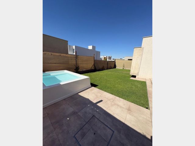 La propiedad cuenta con aberturas de alta gama de aluminio natural DVH, calefacción por losa radiante a gas, tres tanques de agua para abastecimiento interno, uno superior, otro al nivel del suelo con una bomba activadora por si falta agua y el tercero destinado al riego por aspersión.