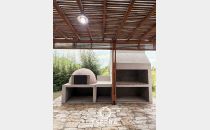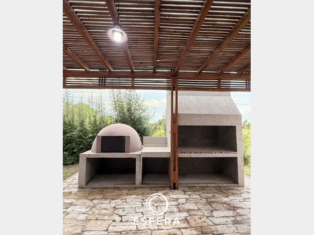 Galería con parrilla y horno de barro;