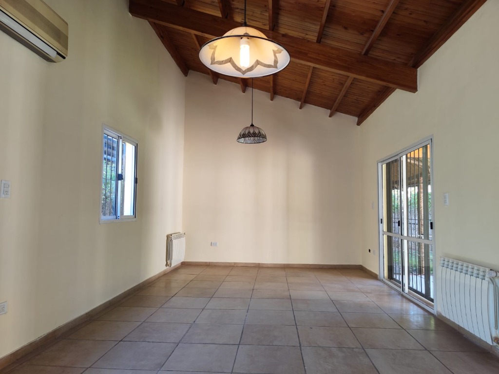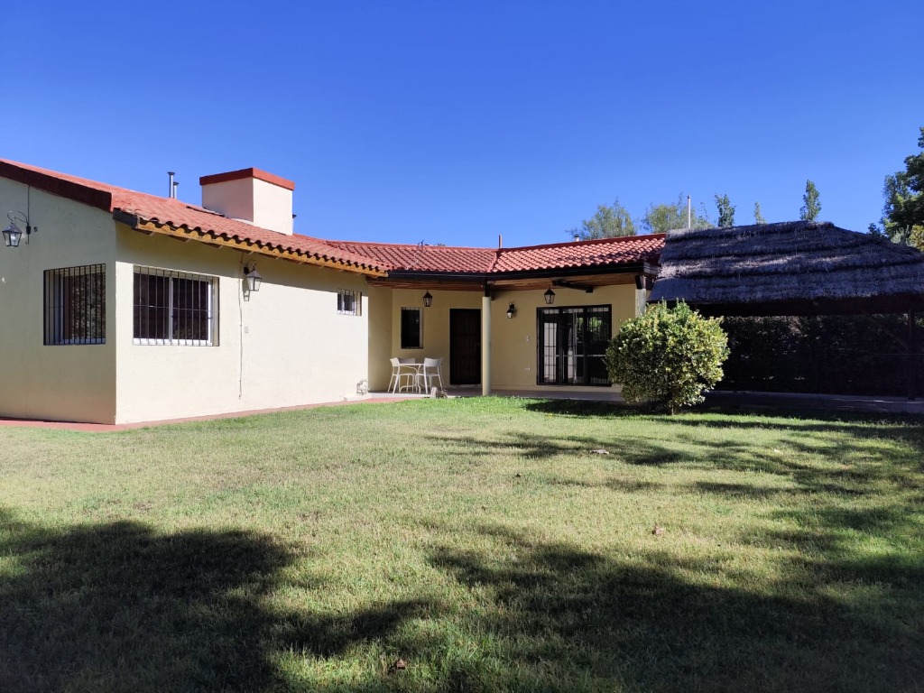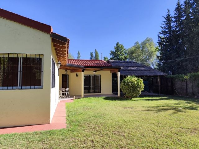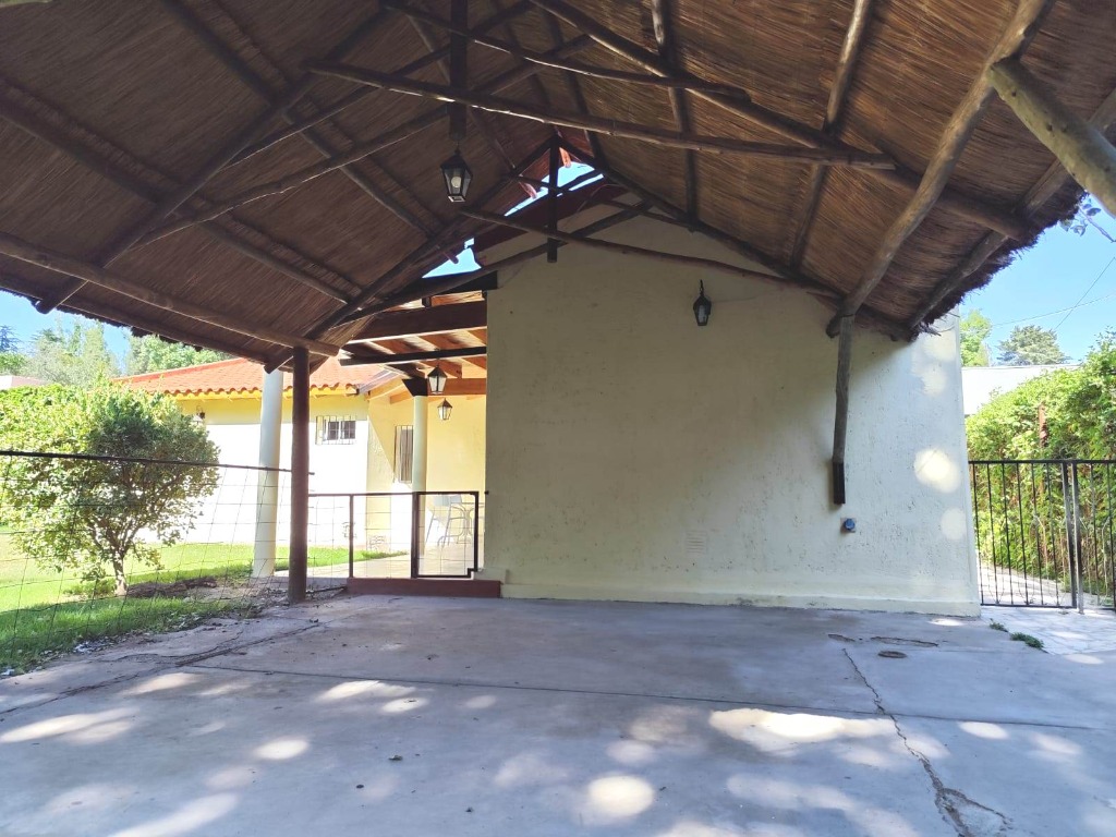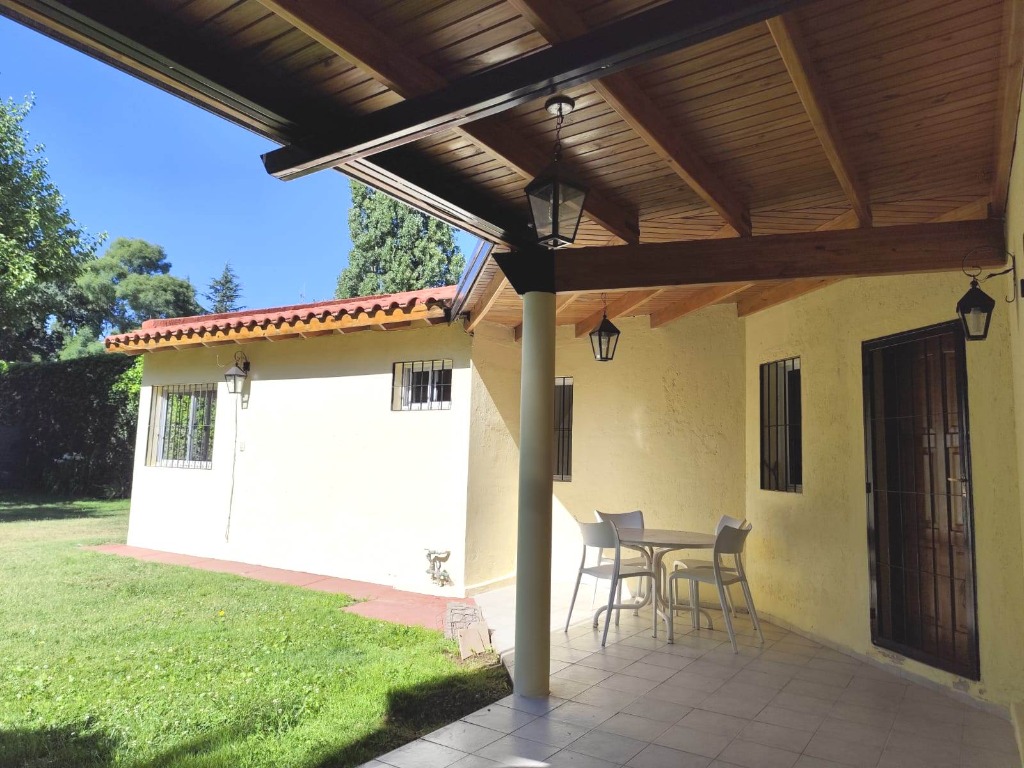 Lo primero que llama la atención es un generoso quincho, que invita a reuniones con amigos y familia. Amplia galería con techos de madera lustrada.