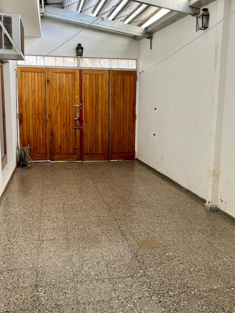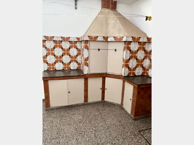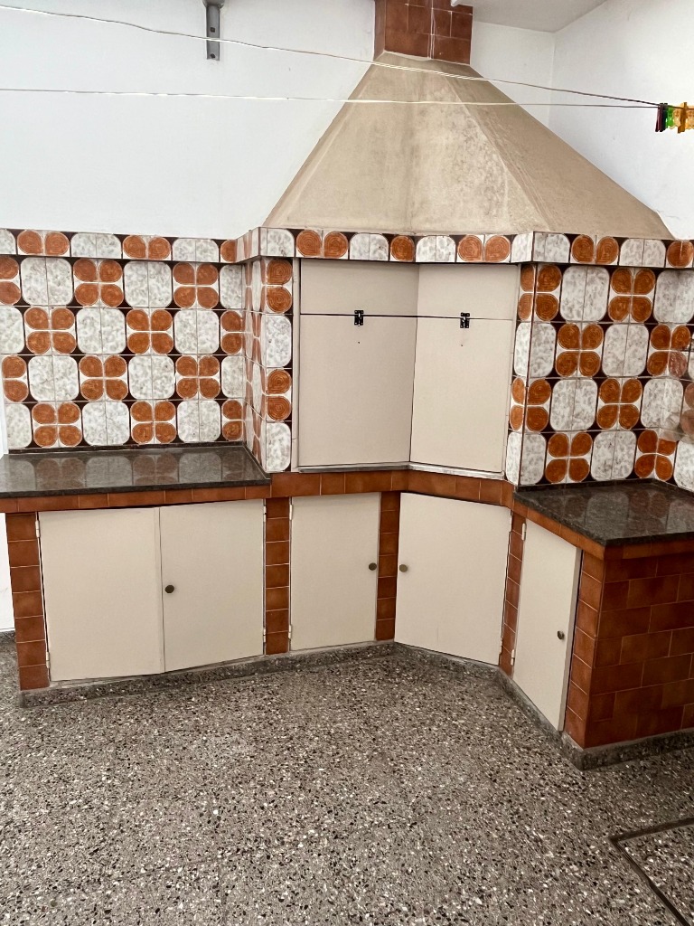 Cochera con toldo metálico rebatible, churrasquera con lugar de guardado.