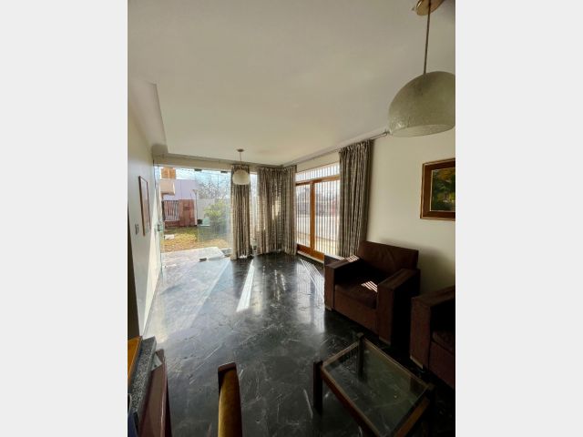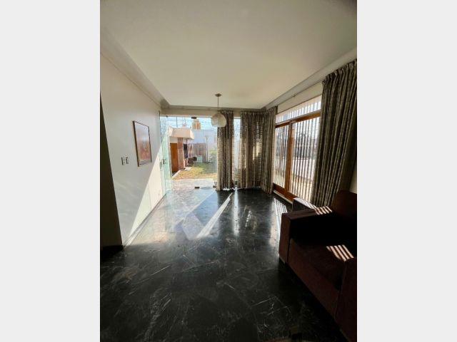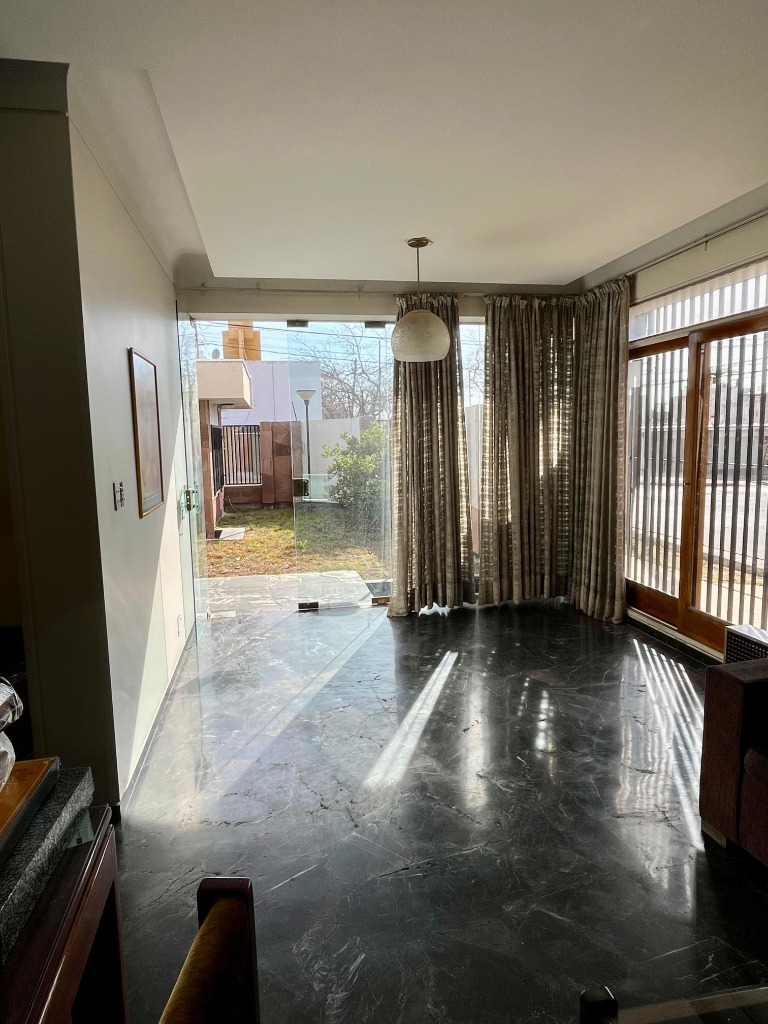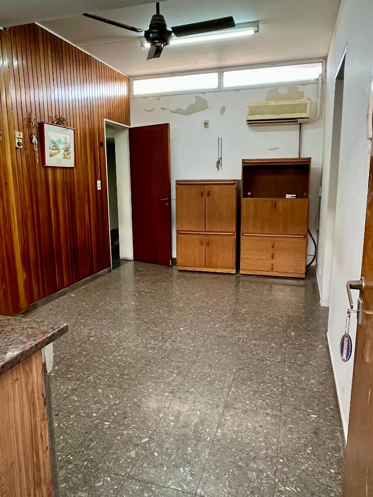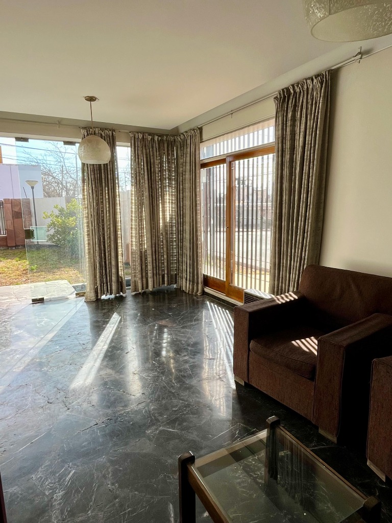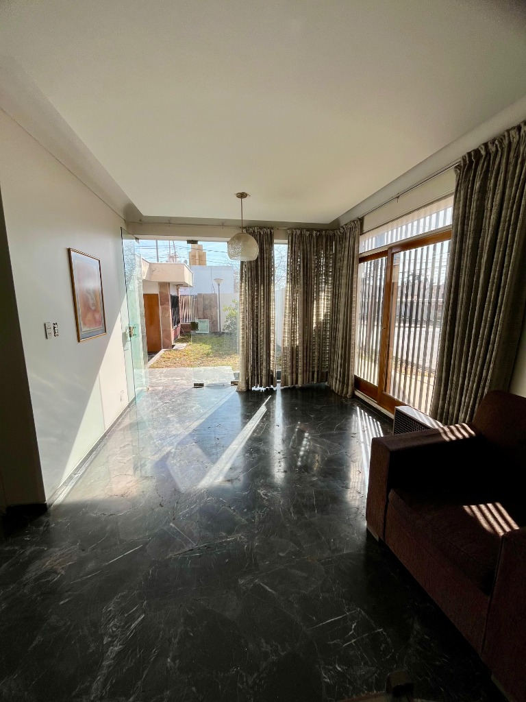 Desarrollada en una planta, consta de 3 dormitorios con placares de madera y pisos de parquet, 2 baños, todos estos ambientes conectados por un amplio pasillo con piso de mármol.