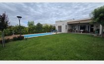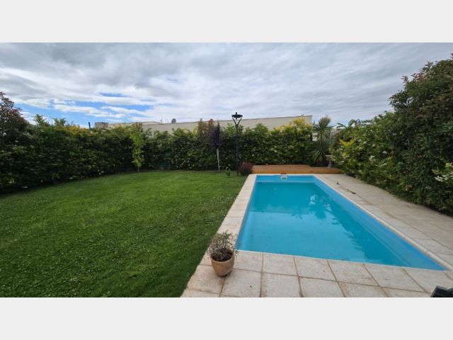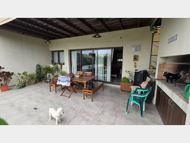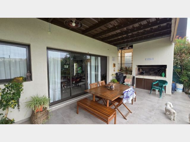 La propiedad en venta es una casa de construcción tradicional con materiales de alta calidad, como mampostería de ladrillo, pisos de porcellanato y calefacción central por radiadores. Con una distribución ideal, la casa cuenta con una cocina, lavandería, amplio living comedor, dos baños completos, tres dormitorios (uno en suite con vestidor), una galería techada con churrasquera, piscina con equipo de filtración, un hermoso patio y jardines parquizados, y una cochera doble techada.