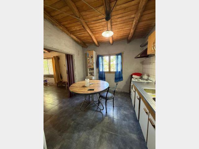 La vivienda cuenta con living comedor con estufa a leña, cocina independiente, dos dormitorios y un baño. Además, dispone de una ampliación ya ejecutada en su estructura, con potencial para un tercer dormitorio, restando únicamente la resolución de la cubierta/techo según el diseño que se prefiera, trabajos de revoque, pintura y terminación de pisos, ya que actualmente cuenta con piso de cemento, permitiendo definir las terminaciones a gusto del comprador.