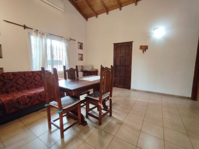 - Casa Desarrollada en una Sola Planta, posee: Doble ingreso, uno por Living Comedor y el otro por Cocina con comedor diario, un (1) Baño completo, Lavandería, Tres (3) Dormitorios, uno de ellos con gran Placard tipo Vestidor y Baño en suite, Patio trasero Amplio, Churrasquera, Depósito y Cochera frontal