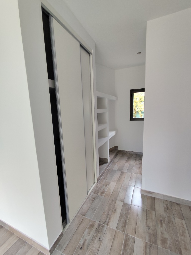 Consta con Ingreso con hall de distribución, living comedor muy amplio con circulación cruzada de aire y orientación norte,sur y oeste, escritorio o tercer dormitorio, con ingreso por el hall o por el pasillo de los dormitorios y orientación norte, segundo dormitorio con placard y orientación hacia el norte, Baño completo, Amplia habitación principal con vestidor y baño en suitte, Los tres dormitorios con puerta ventana con salida al jardín. Amplio pasillo De distribución a dormitorios con ventana al sur y espacio ahora libre para instalar computadora con estantes o placard.