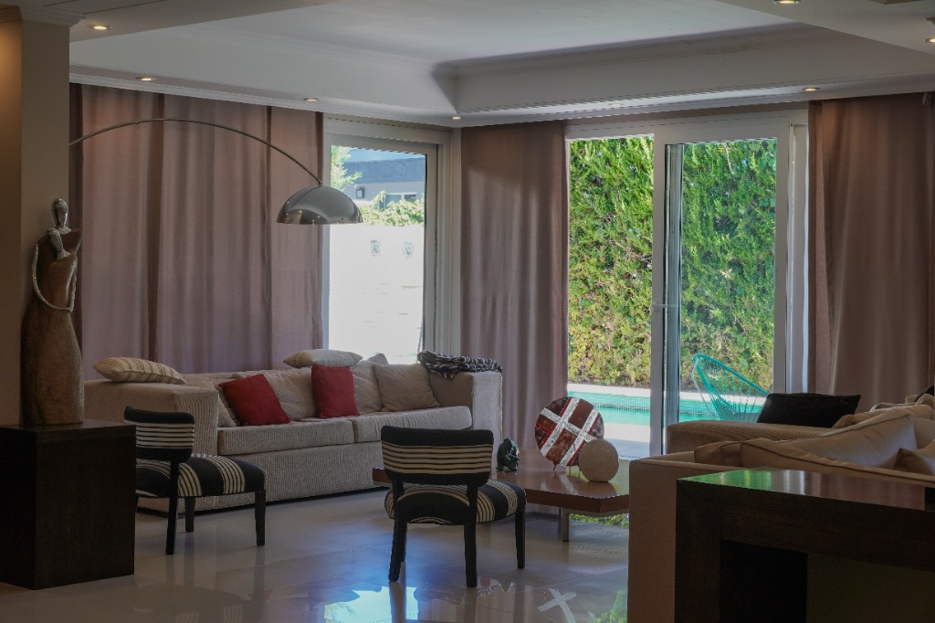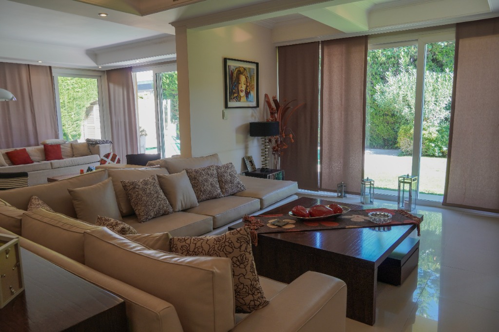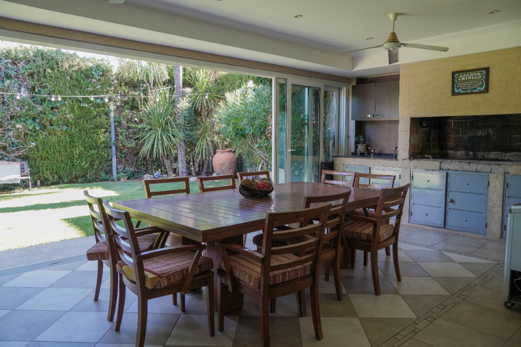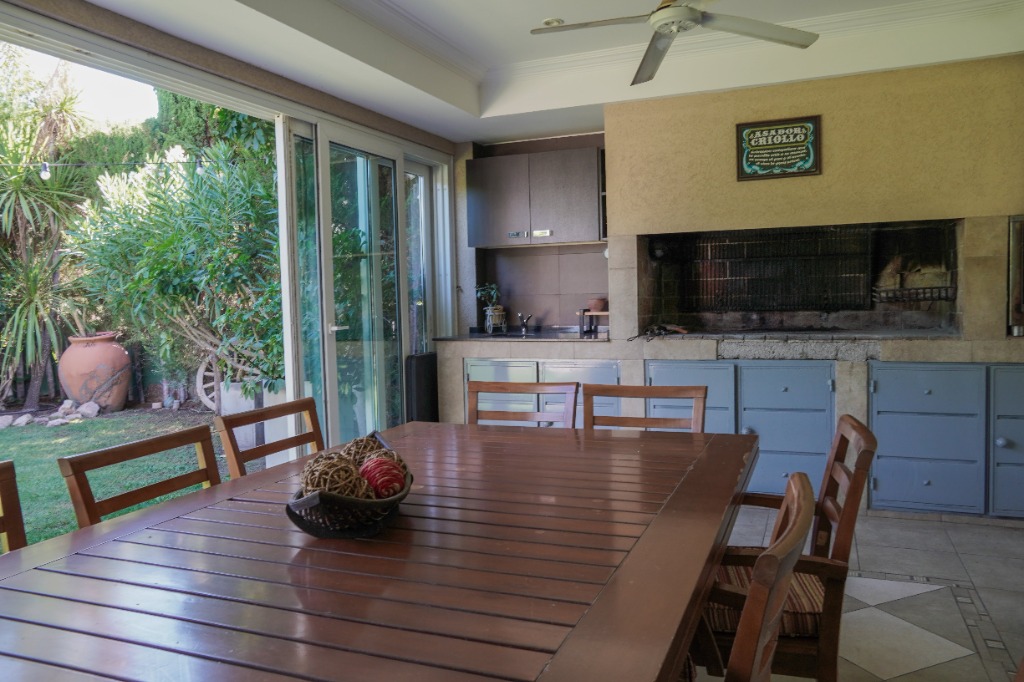 HERMOSA CASA DE CATEGORÍA! Planta Baja: Amplio living comedor con rincón de fuego, pisos porcelanatos. Gran estar diario, cocina grande con isla de trabajo. Lavadero independiente. Dormitorio con baño en suite. Quincho, jardín, pileta con cascada. Planta Alta: 3 dormitorios, todos con baño en suite y todos con vestidor.