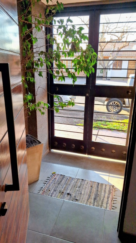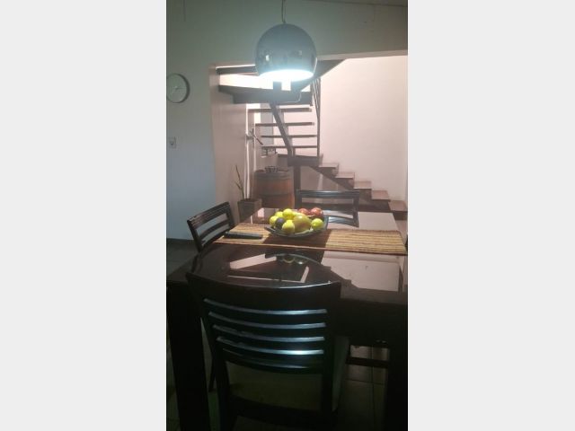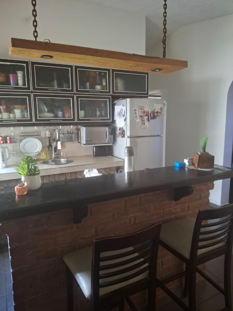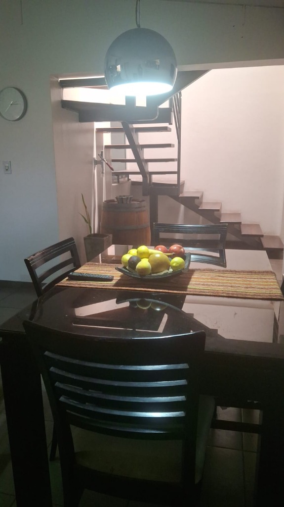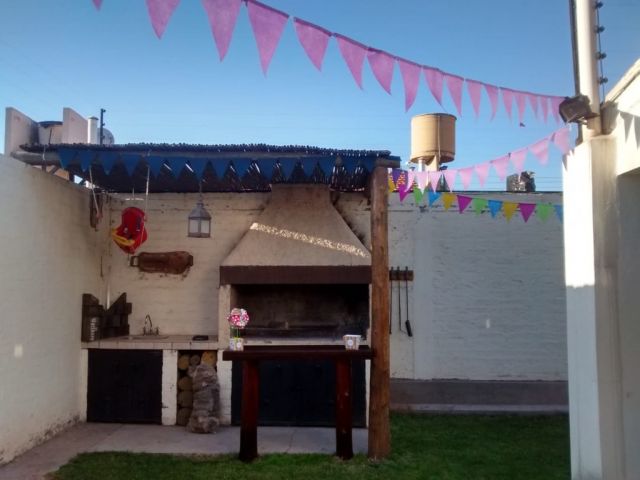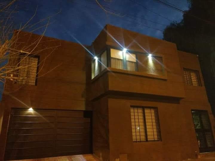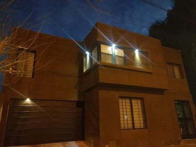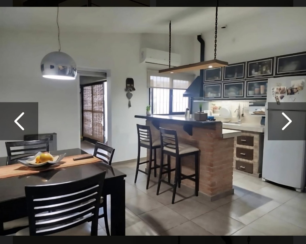Descripcion: Es una propiedad construida en dos plantas. en Planta Baja encontramos una puerta metalica doble, donde se accede al living que tiene una estufa a leña que funciona a la perfeccion, luego se encuentra el estar diario con una cocina integrada con barra, y amplios muebles de cocina. Posee dos dormitorios en PB que se usan como escritorio y SUM, un baño completo con diseño muy elegante. Tiene un aire acondicionado en PB y calefactores. En Planta alta tiene tres dormitorios, todos con placar y aire acondicionado.