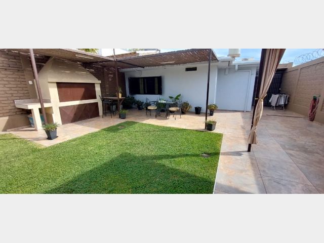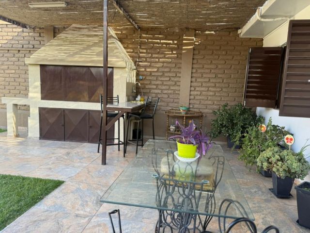 Características de la propiedad: cuenta con tres habitaciones (una de ellas en suite); dos baños completos (incluido el de la habitación principal); un toilette; living comedor; amplia cocina comedor separada, con alacenas y bajo mesada; lavandería independiente; jardín; quincho techado con barra, y churrasquera cerrada con bacha; piscina; y cochera para dos vehículos.