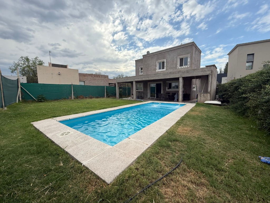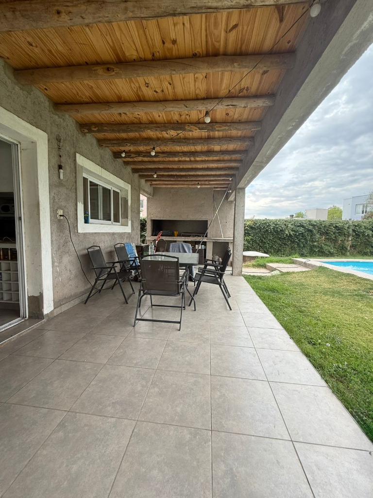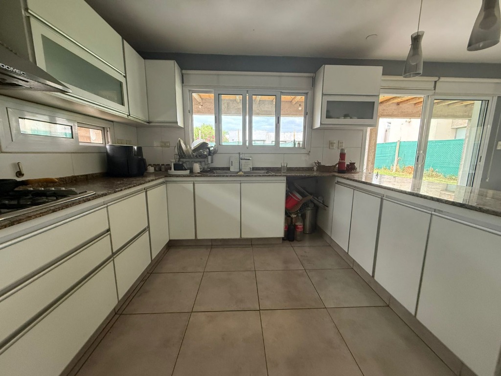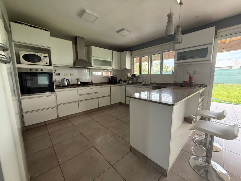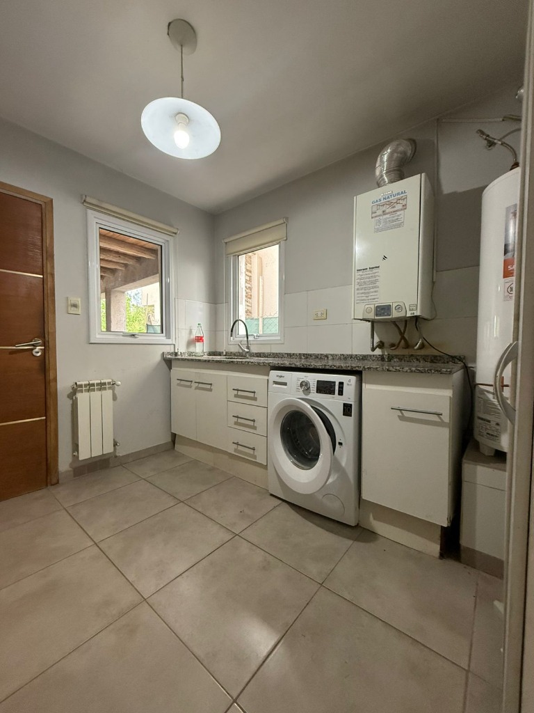 Datos importantes: la casa posee calefacción central (con radiadores en todos los ambientes), equipo de aire acondicionado en una de la habitaciones, todas las aberturas son de aluminio con doble vidrio; el barrio cuenta con todos los servicios (luz, gas natural, agua corriente y cloacas), cancha de fútbol y juegos par niños, y posee seguridad las 24 horas.
