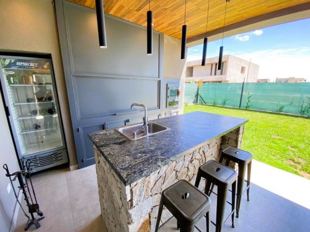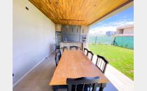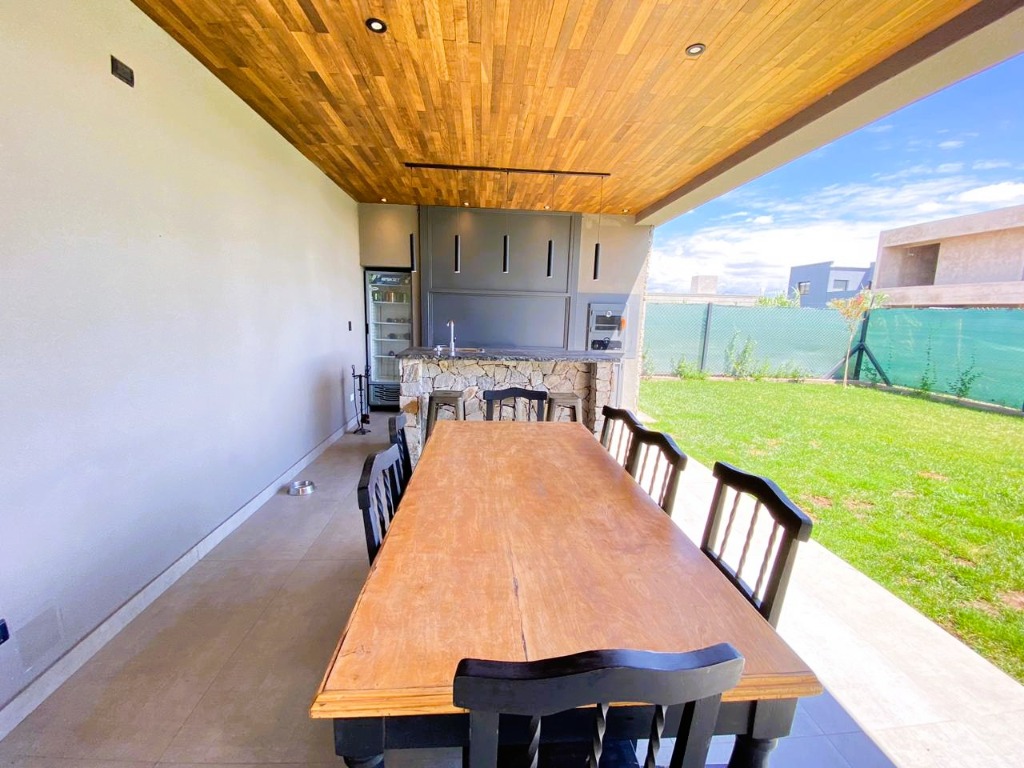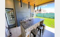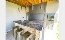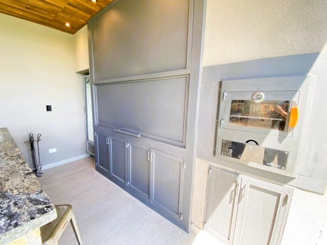 - Galería exterior de categoría y totalmente equipada con parrilla, horno a gas, bacha exterior, heladera, isla doble altura cubierta de granito, luces Smart, techo de duelas de vino cepilladas.