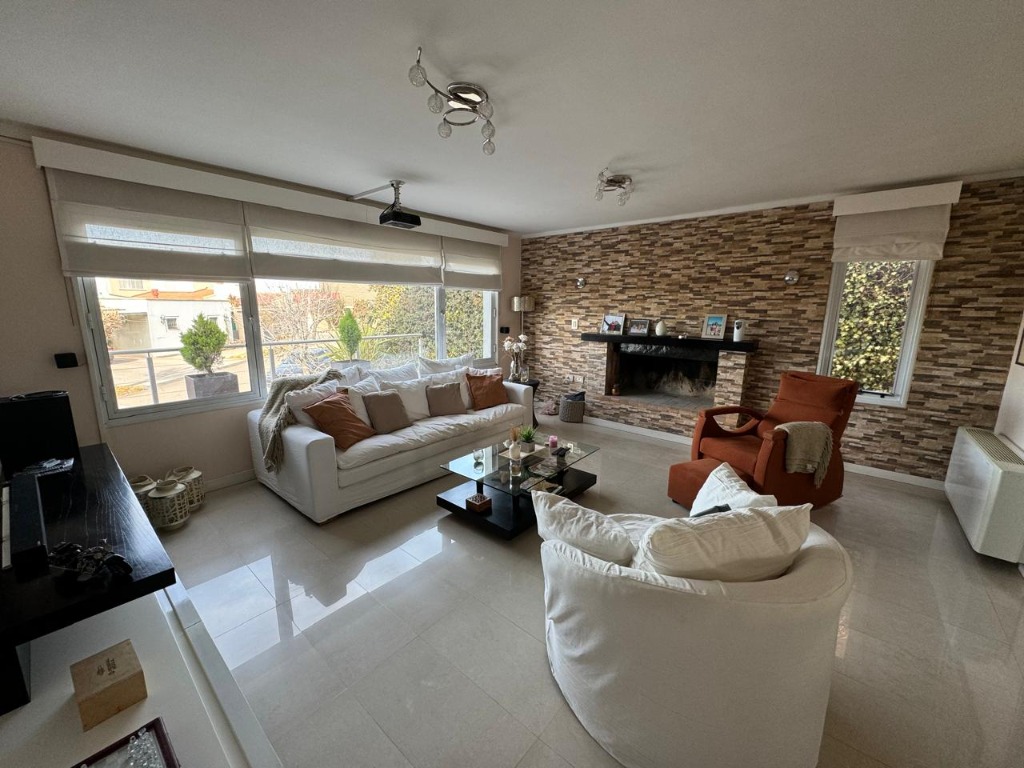 La casa dispuesta en 2 plantas, cuenta en planta baja con dos habitaciones, living, comedor y amplia cocina con isla mas toilette y en planta alta se encuentra la habitación principal, escritorio, playroom y una amplia terraza.