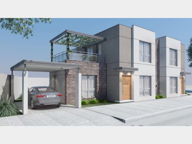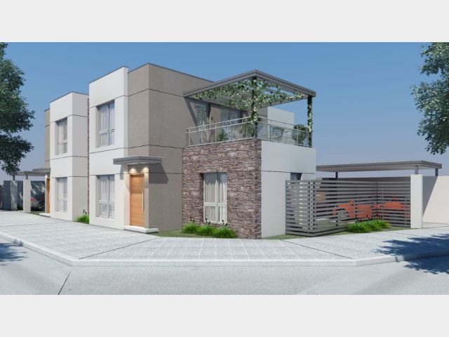 • Cochera con pérgola, opción doble cochera.