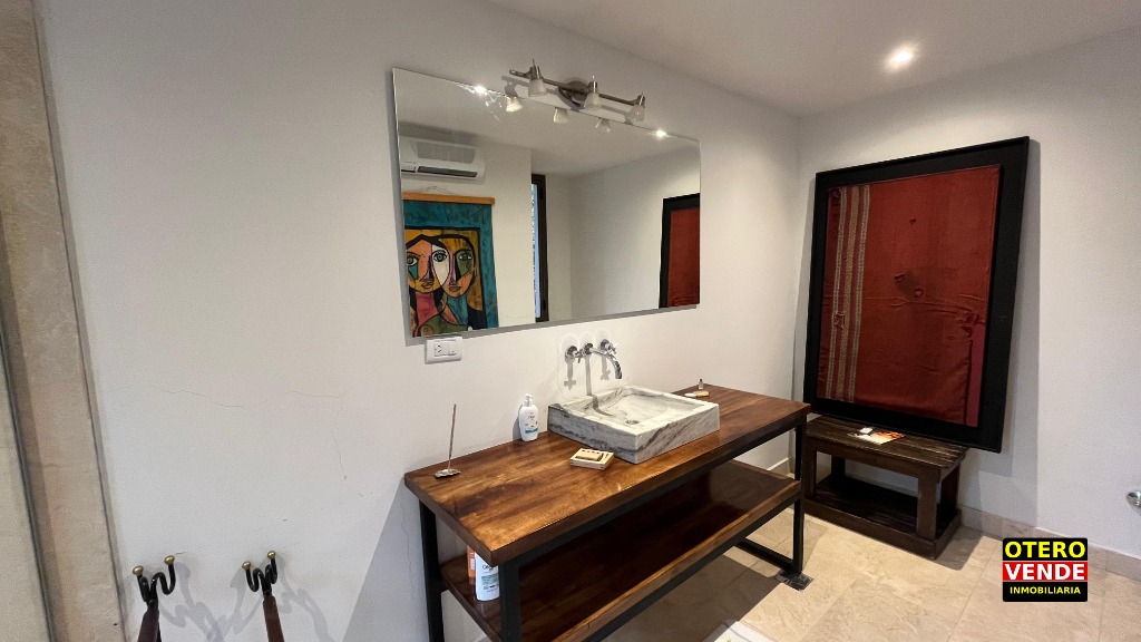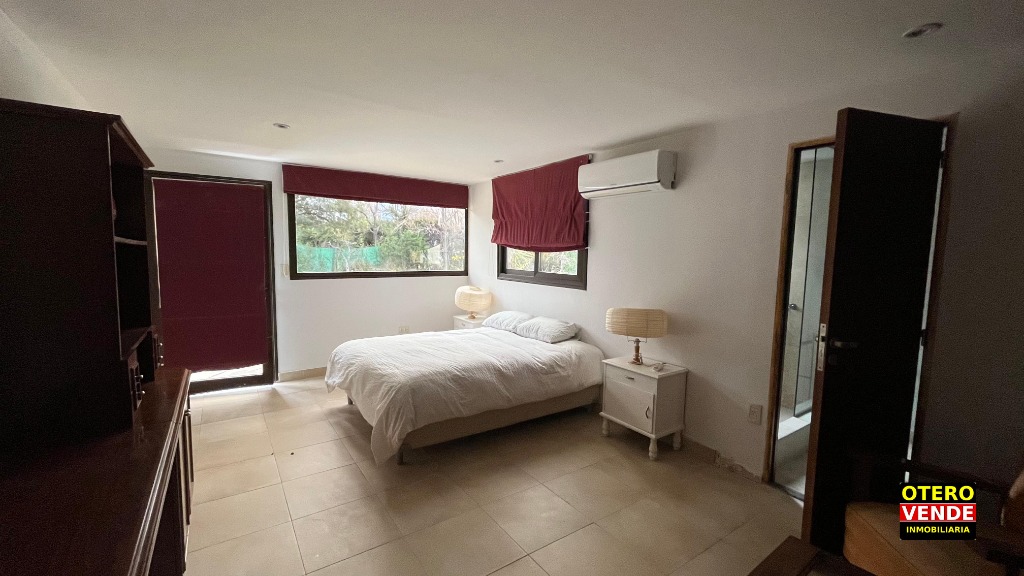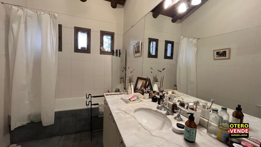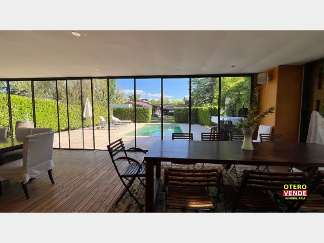 La propiedad tiene un cómodo departamento de huéspedes, independiente de la casa principal. Todo de gran calidad constructiva. Aberturas de doble vidriado. Pisos entablonados y de porcelanato. Calefacción central por radiadores. Riego por aspersión, etc.