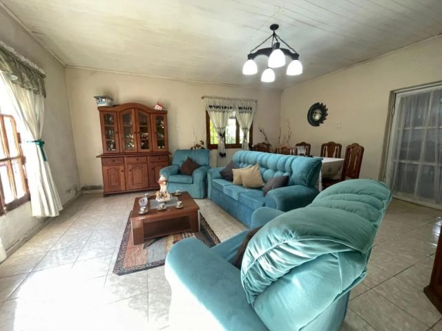 El terreno cuenta con 7.800 m² y una vivienda principal de 230 m² en muy buen estado general. Distribuida en 7 ambientes: sala de estar, living, cocina-comedor, tres habitaciones y un baño. Además, posee dos amplias galerías abiertas (36 m² y 70 m²), un galpón de 6 x 7,5 metros y estructuras anexas como gallineros.
