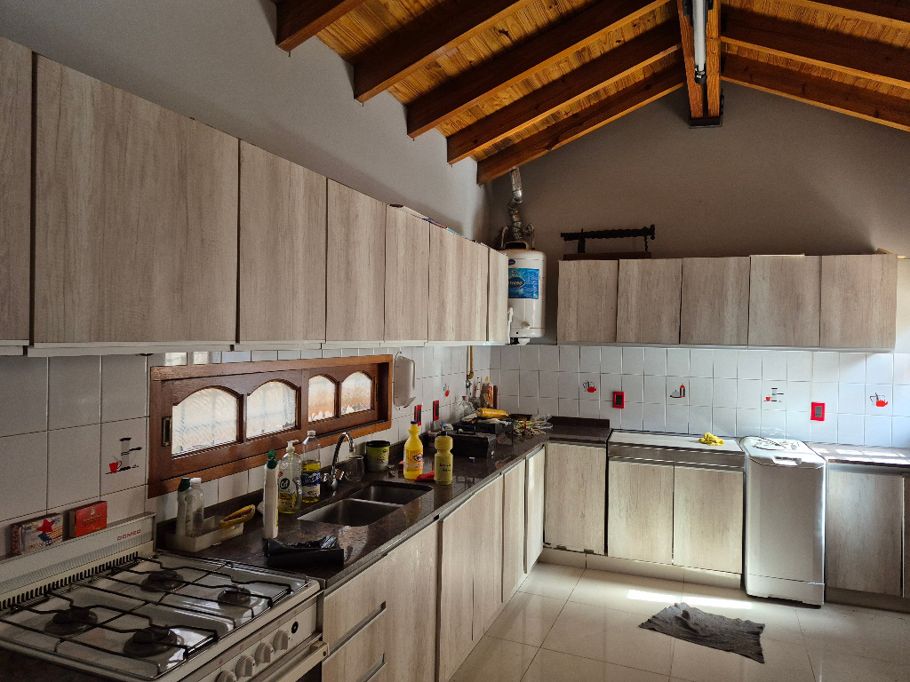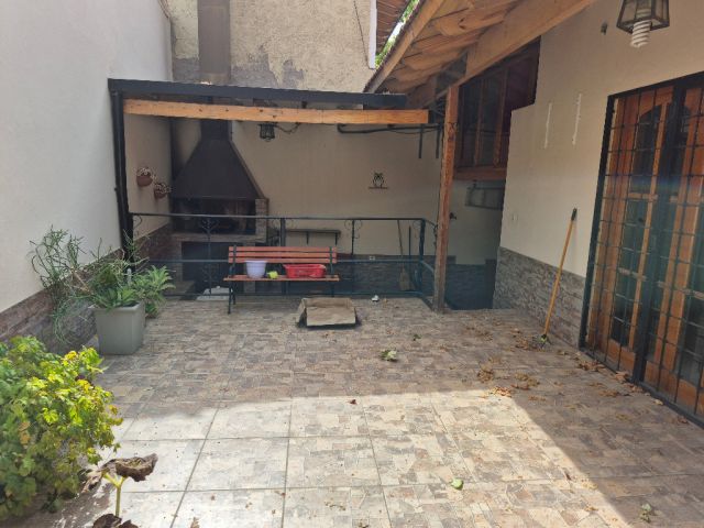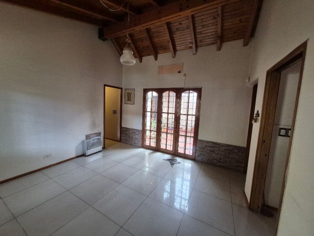 Tres dormitorios con placares, un de ellos con baño en suite, tres baños, cochera doble cubierta con portón automatizado, dos patios, jardín en el frente, amplio living - comedor, comedor diario y cocina con bajo mesada y alacenas. Tiene rejas en todas las puertas y ventanas y alarma.