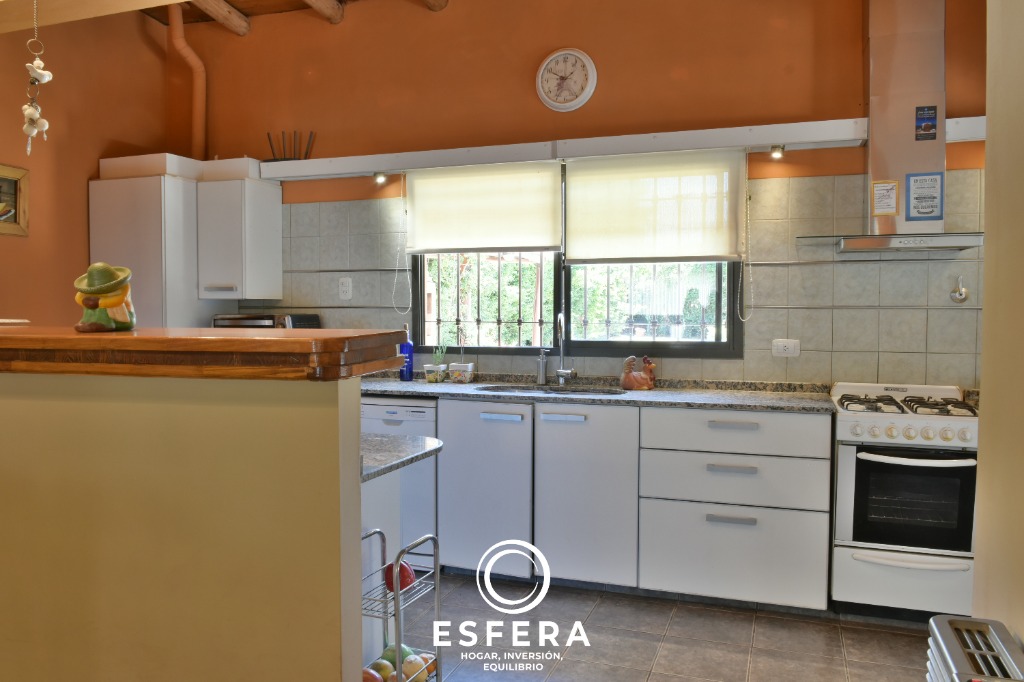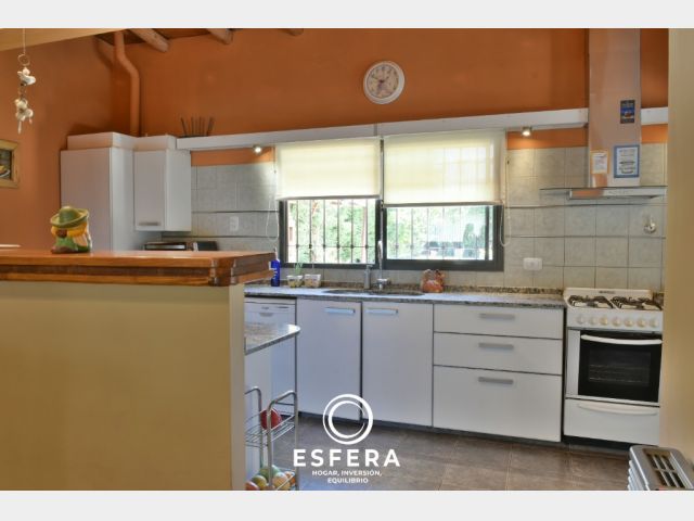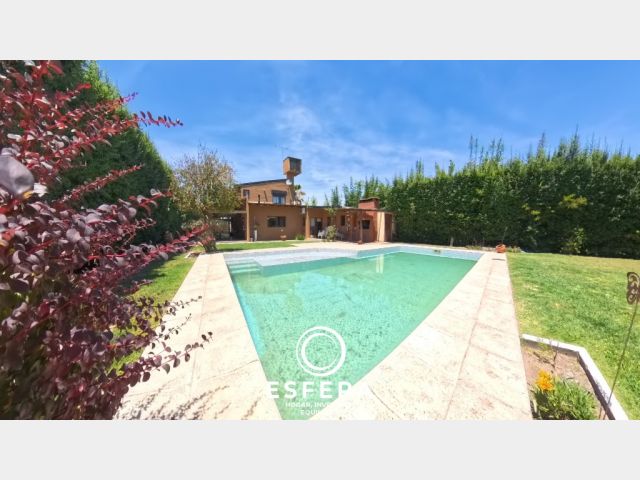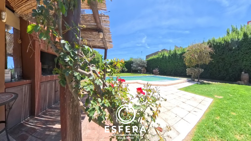 Posee además una cochera para tres vehículos, un amplio parque con piscina, churasquera y dos depósitos destinados al guardado de herramientas y elementos de jardín.