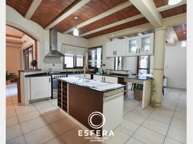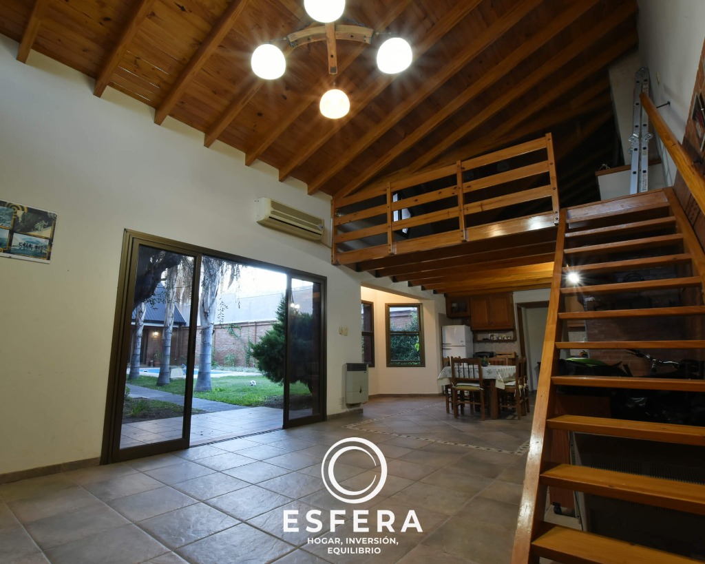 La casa cuenta además con quincho, cochera para dos vehículos y pileta.