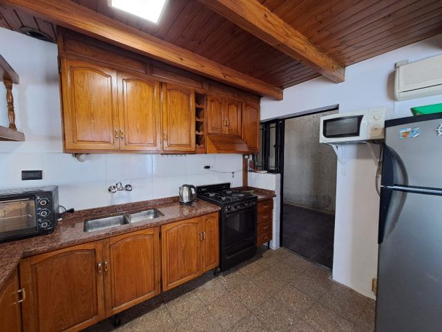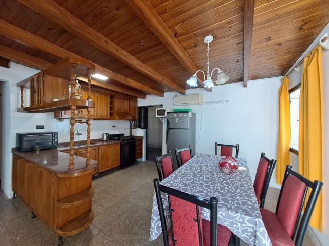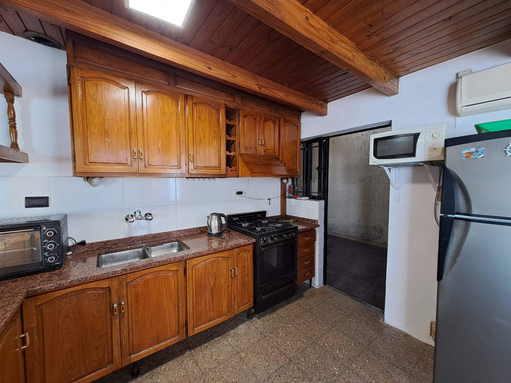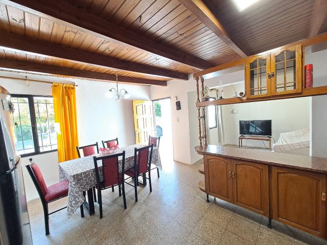 La casa tiene ingreso por la cochera, pasante con capacidad hasta 4 vehículos, con salida directa al patio (que tiene churrasquera y un pequeño depósito). Y el ingreso principal, a un amplio estar comedor con cocina integrada, en excelentes condiciones, muy luminoso. Tiene 1 pasillo que se ensancha y genera un cómodo escritorio, un baño completo, y 3 dormitorios en planta baja, el principal con baño en suite, además de un amplio lavadero, con la escalera a la planta alta, donde la vivienda tiene un cómodo estar íntimo o escritorio, y 2 dormitorios adicionales. Todo de construcción tradicional y en excelentes condiciones