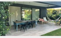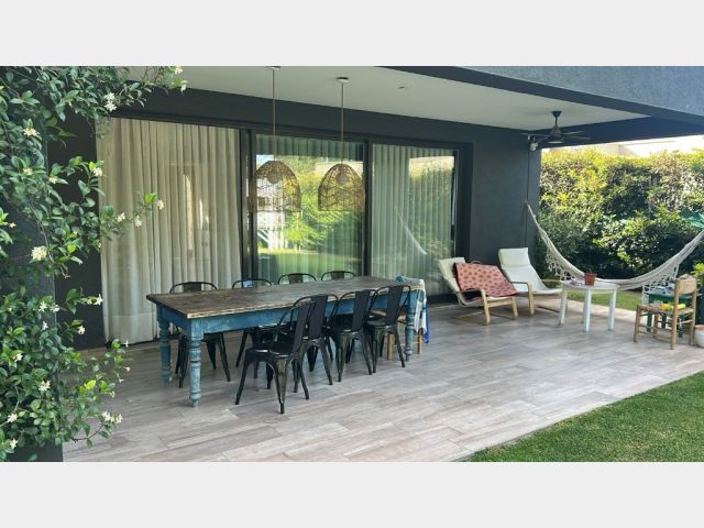 - Planta Baja: living comedor; cocina comedor integrada con isla; un escritorio grande (que podría funcionar como cuarta habitación); un toilette de visitas; lavandería; galería techada y parquizada; amplio jardín; piscina; churrasquera con mesada y espacio de guardado para leña; y cochera techada para dos vehículos grandes.
