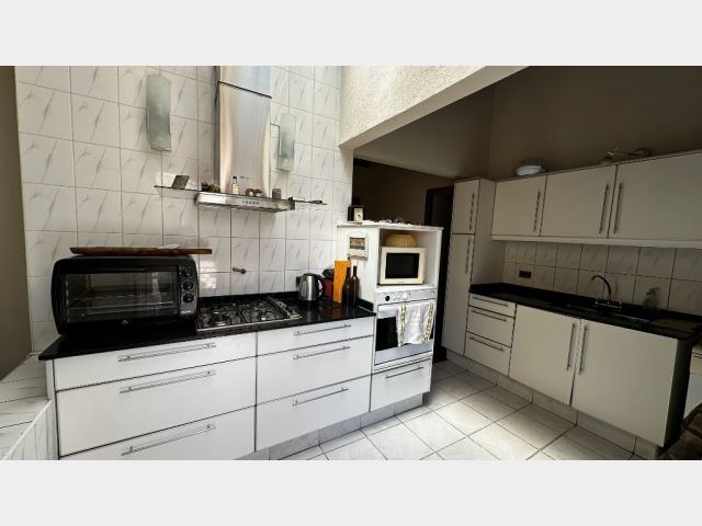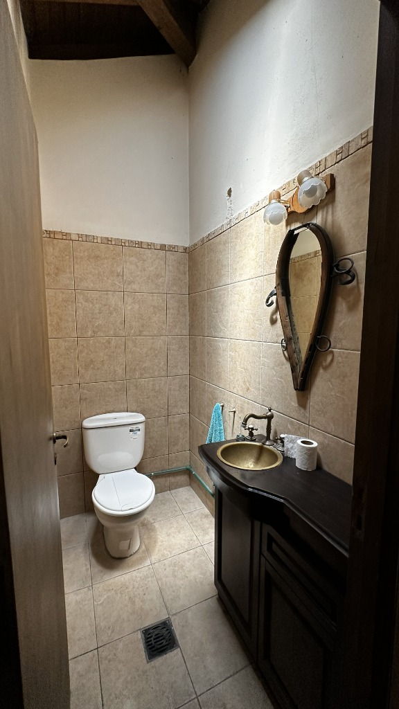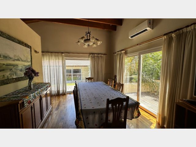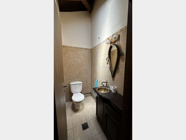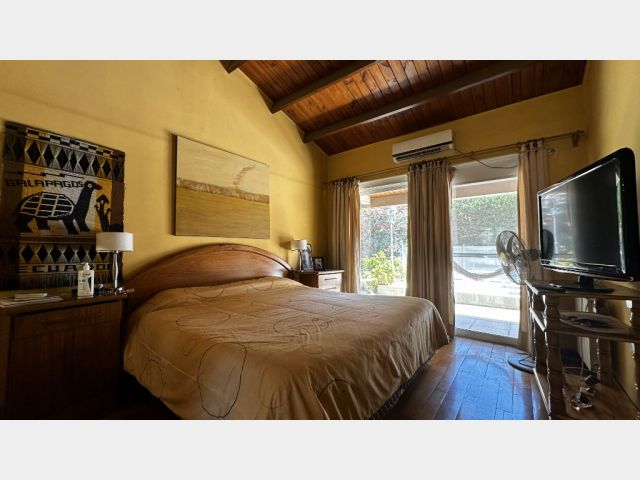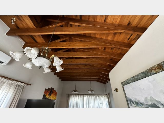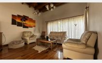 Living comedor amplio con techo de madera francesa, cocina amoblada, un toilette, 4 dormitorios, uno en suite con vestido y 1 baño completo.