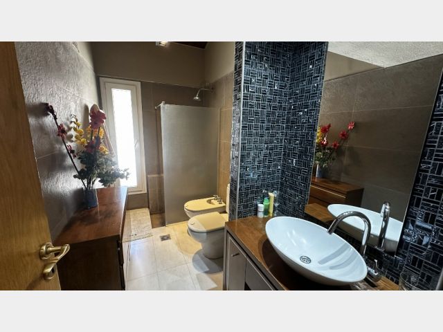 Exterior con pileta cercada y quincho independiente de 73 m² con churrasquera y baño. Subsuelo con cochera doble, lavadero y espacio para cava.