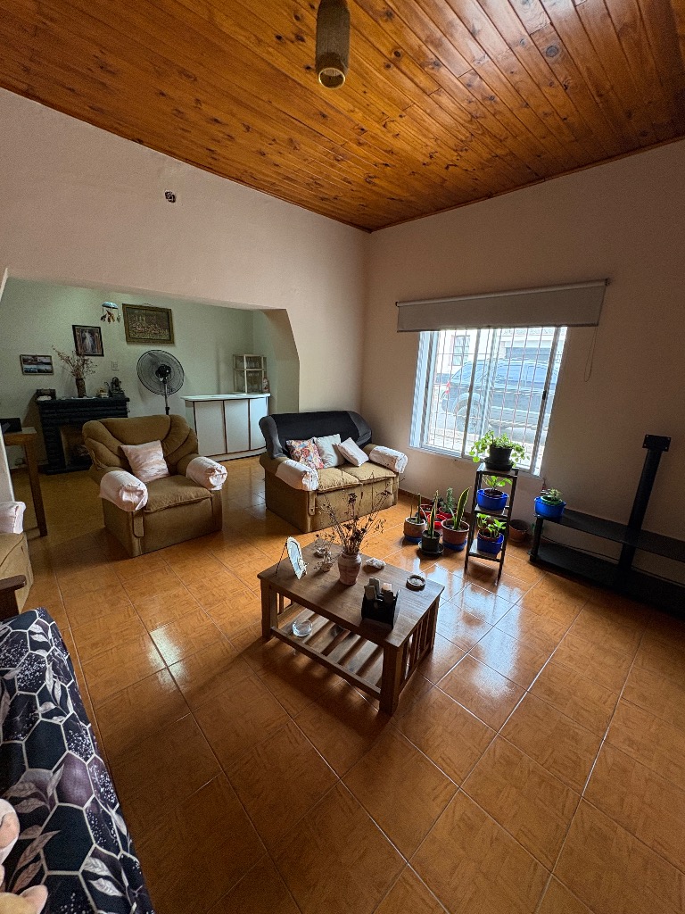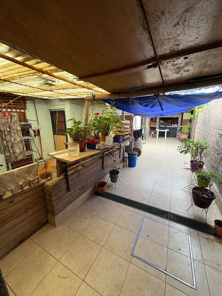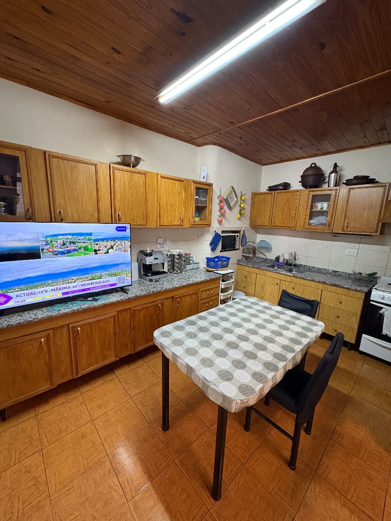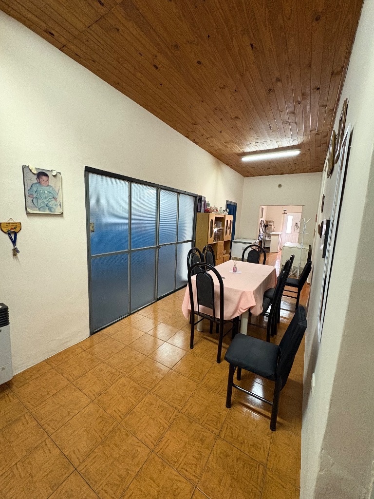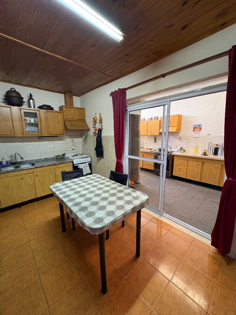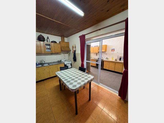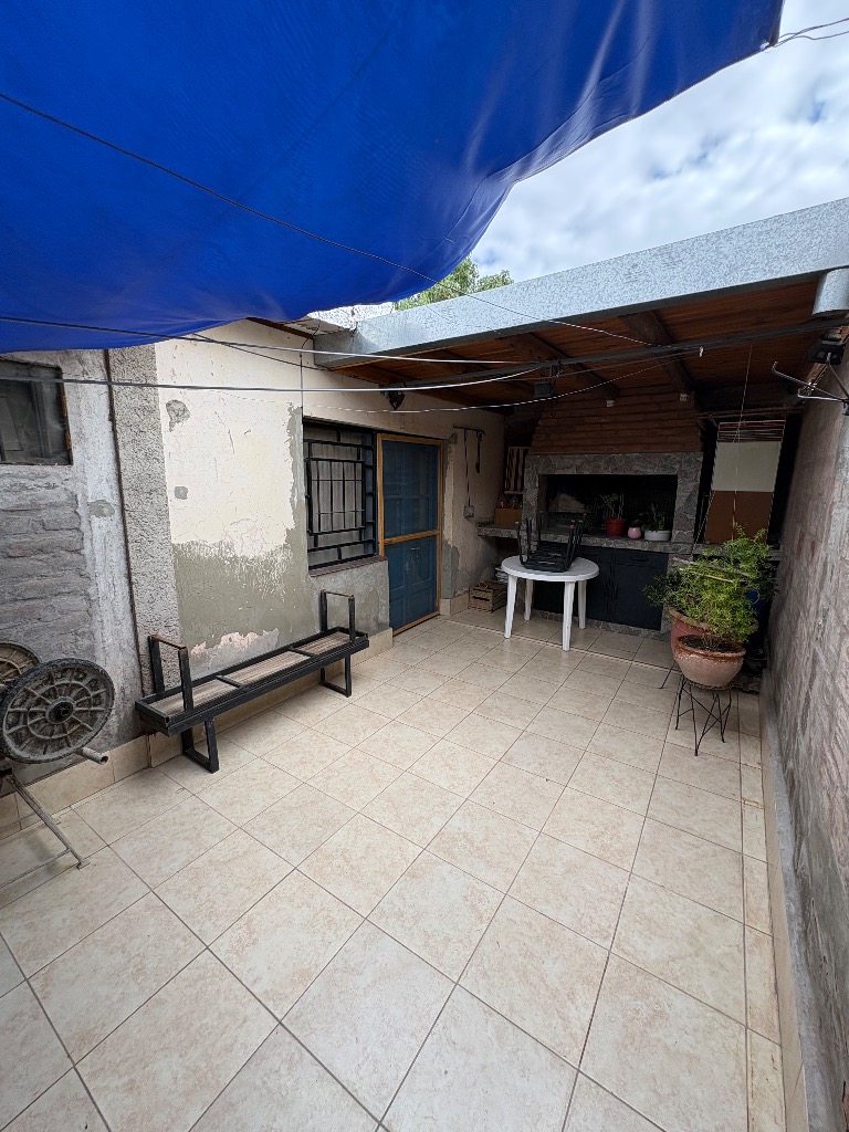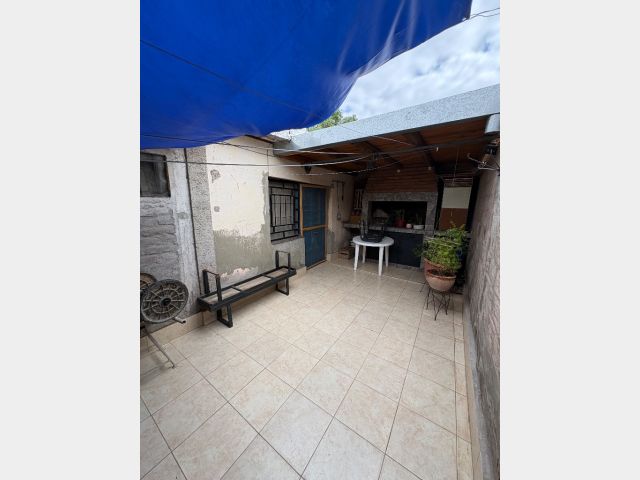 Cuenta con hall de entrada, galería-living, cocina en interior de casa y otra en la cochera, dos habitaciones, lavanderia, baño y deposito, cochera cerrada para tres vehiculos y patio con churrasquera. Mas un departamento compuesto por cocina comedor, baño y dos habitaciones. Cuenta con todos los servicios. No es apta crédito hipotecario.