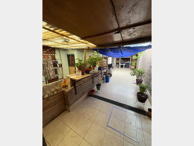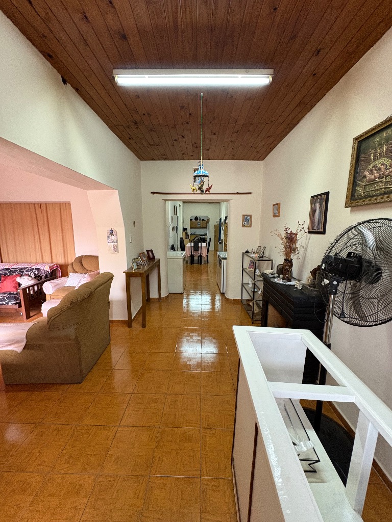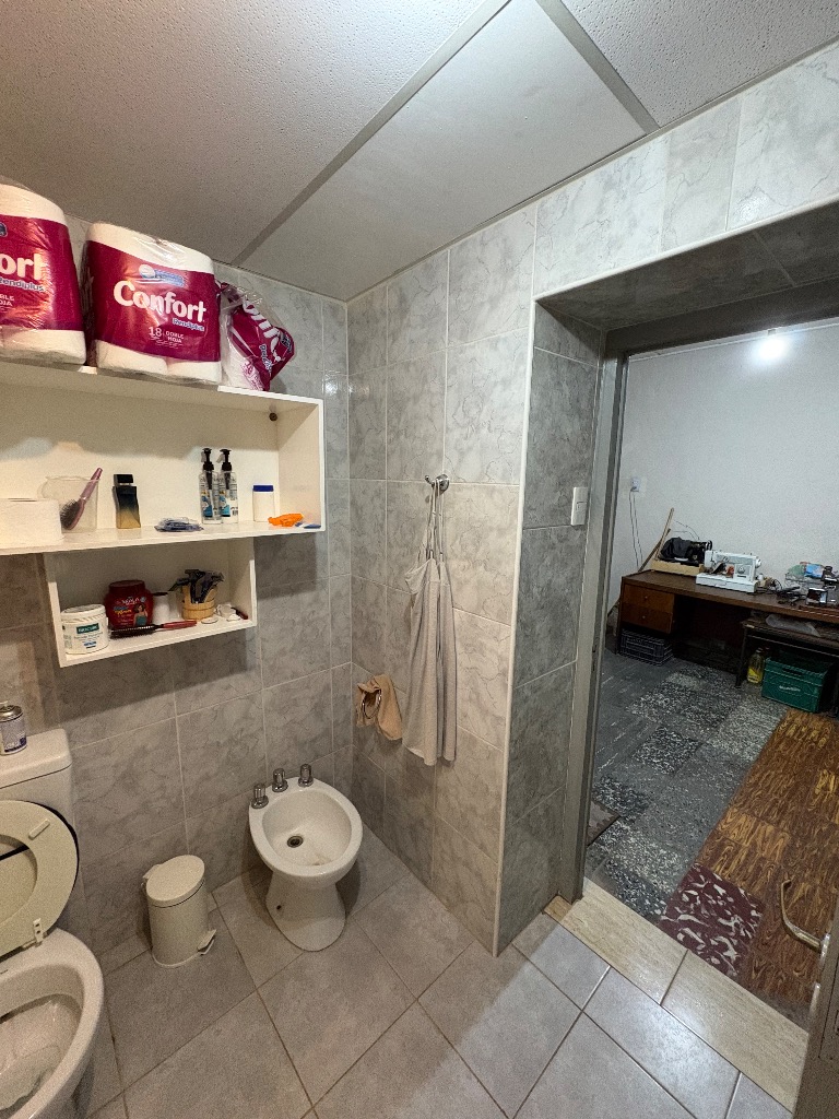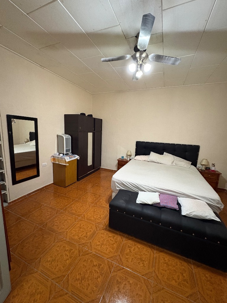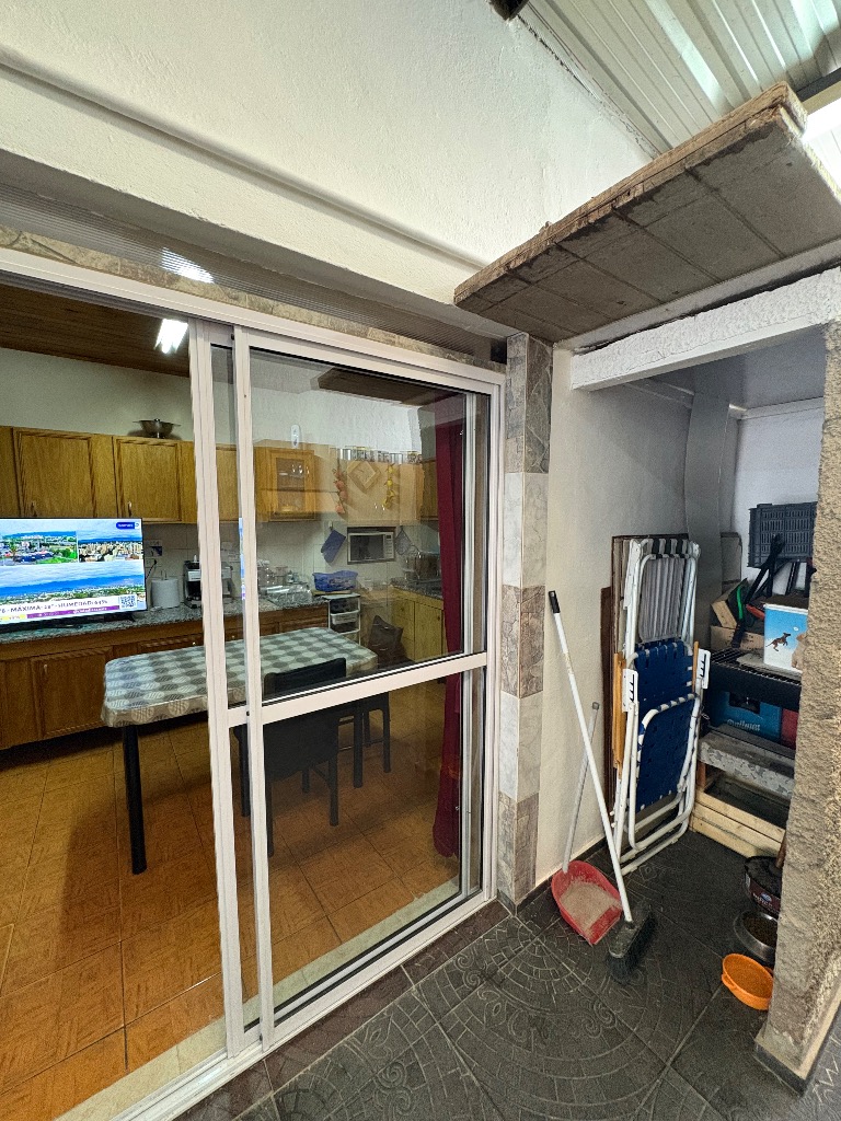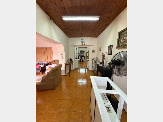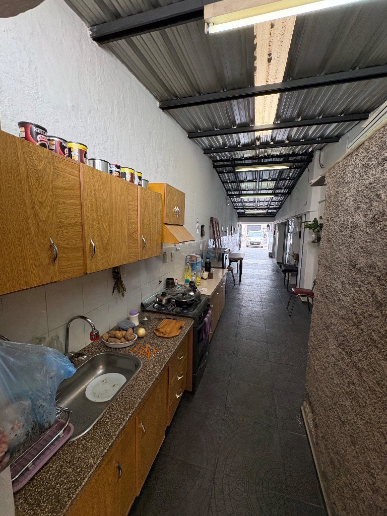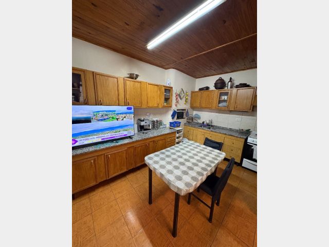 Cuenta con hall de entrada, galería-living, cocina en interior de casa y otra en la cochera, dos habitaciones, lavanderia, baño y deposito, cochera cerrada para tres vehiculos y patio con churrasquera. Mas un departamento compuesto por cocina comedor, baño y dos habitaciones. Cuenta con todos los servicios. No es apta crédito hipotecario.