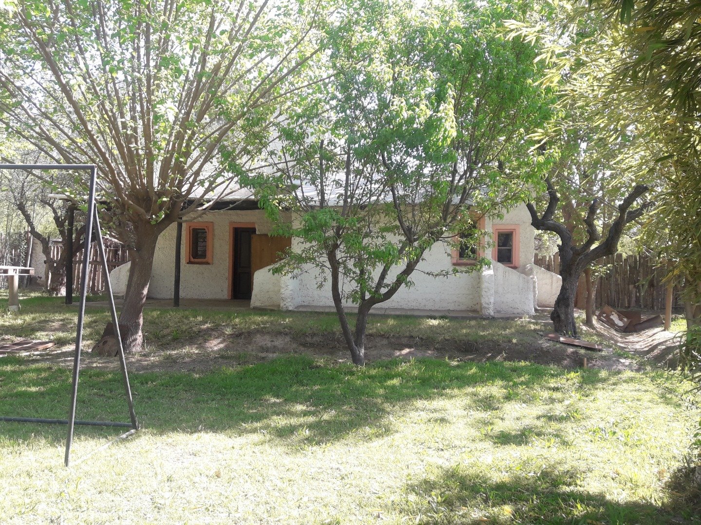Casa Principal: 3 dormitorios, cocina-comedor de 60 m², baño y galería techada (total 120 m² cubiertos).