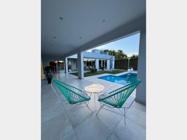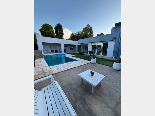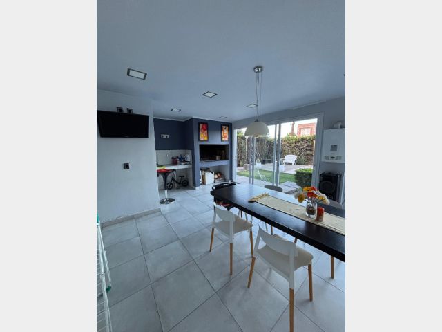 Hermosa propiedad de 528 m² con un diseño moderno y confortable. Su superficie cubierta es de 230m2 y cuenta con 3 habitaciones, 2 baños, salón-cocina-comedor integrados, lavandería y depósito . Disfrutá de un quincho cerrado con churrasquera , galería semicubierta y una pileta de 6x3.50 con cascada y playa húmeda .