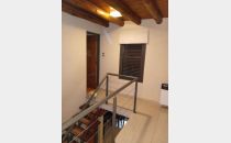 Planta alta: Escaleras de estructura metálica que conectan a paso comunicador con un baño moderno con accesorios completos, 2 Dormitorios con pisos flotantes, zócalos de madera, carpintería de aluminio en sus aberturas, placares corredizos de melamina,pisos cerámicos en pasillos, , techos de machimbre con palos rollizos.