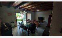 Planta baja: Ingresó a la propiedad a través de puerta reja que conecta al ingreso con doble cochera semicubierta. Acceso independiente con paso comunicador a cocina grande con luz natural con muebles de cocina (bajo mesadas y Alacenas) de excelente calidad. mesada color gris mara, grifería de primera calidad mono comando con doble bacha, pequeña lavandería y patio interno tendedero dándole esa privacidad necesaria al hogar, posee baño con ante baño en planta baja con accesorios completos y bañera, dormitorio (1) o estudio muy amplio con placard y pisos flotantes, living grande con ventanales corredizos de aluminio que conectan al jardín, gran chimenea con excelente tiraje, techo de machimbre con palos rollizos gruesos.