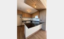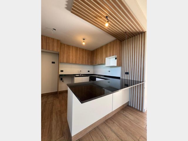 Cocina con barra integrada.
