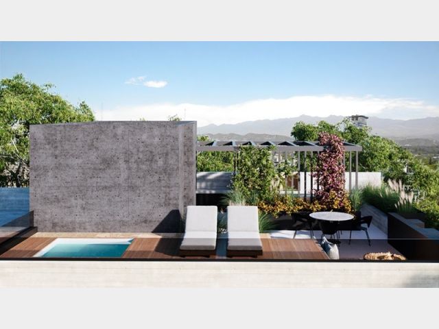 Solarium con pequeña piscina