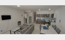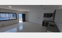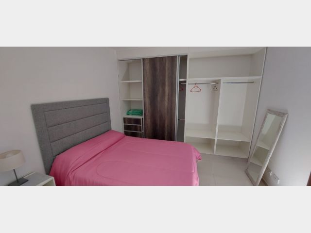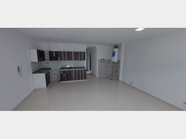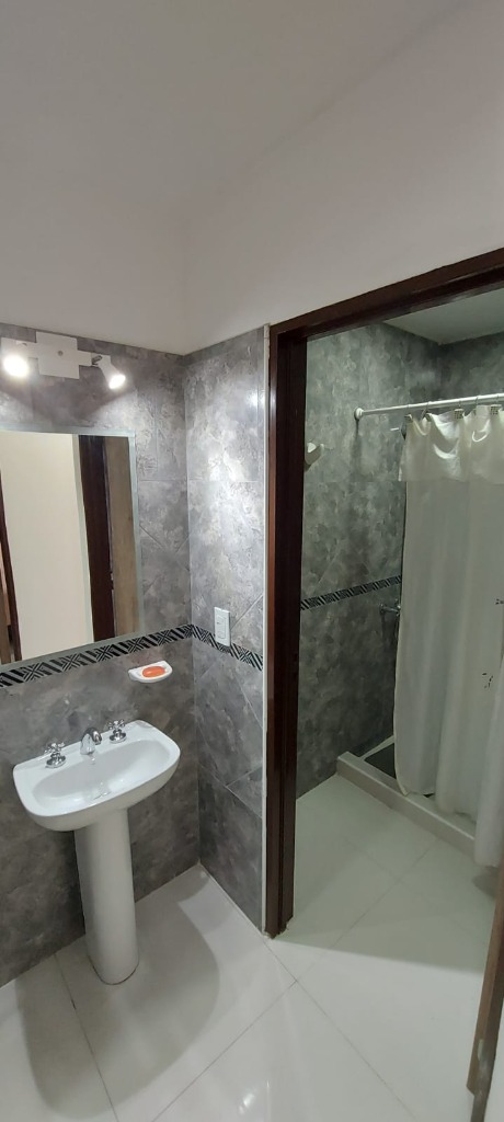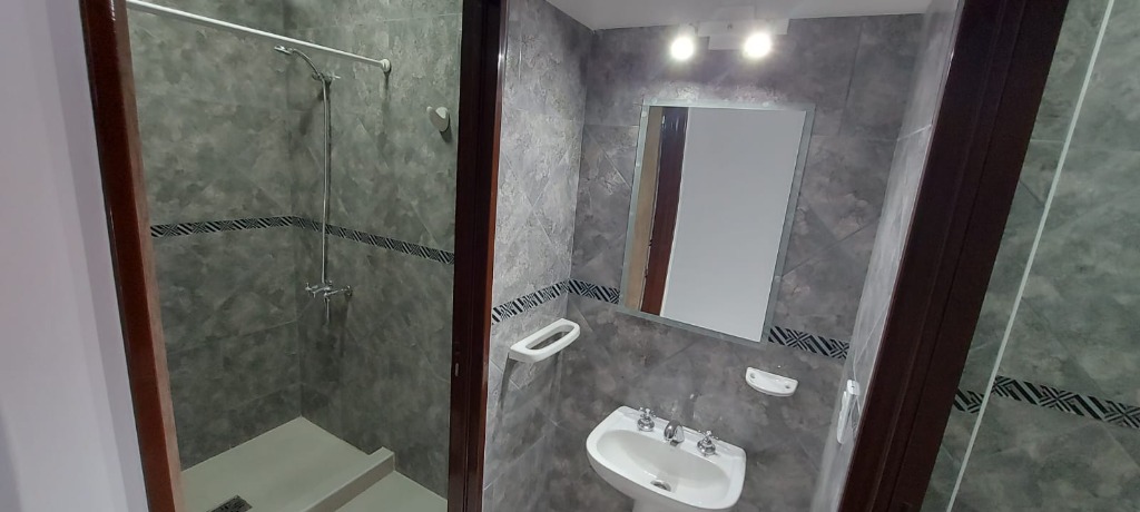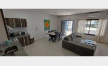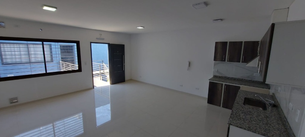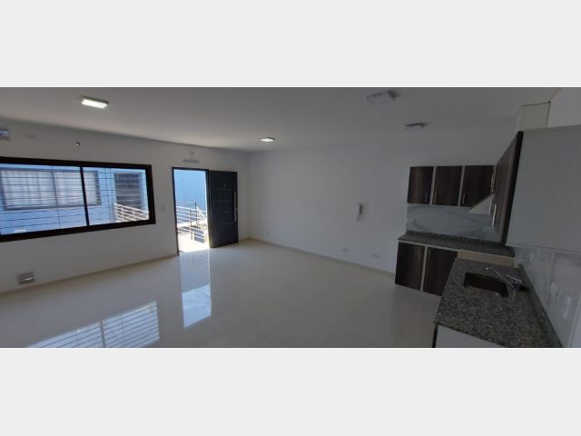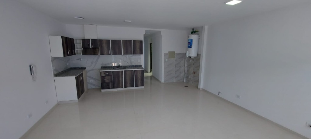 Un departamento de un dormitorio con placar, Cuenta con living comedor con cocina y lavandería. Un baño zonificado