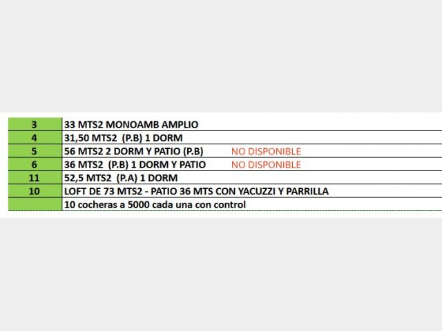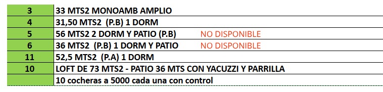(en una imagen se detalla cada departamento) SOLO DISPONIBLES: Depto N° 3,4,10 y 11