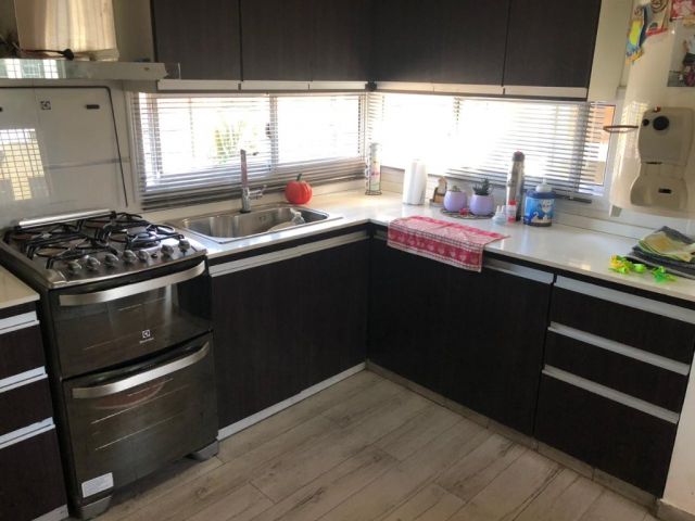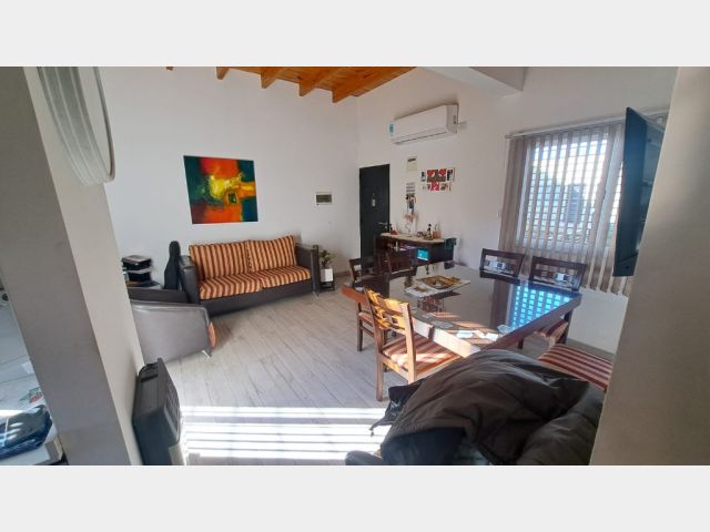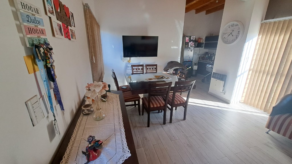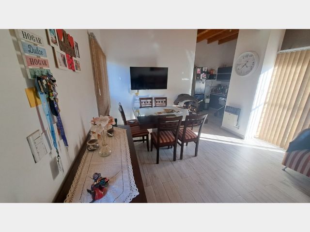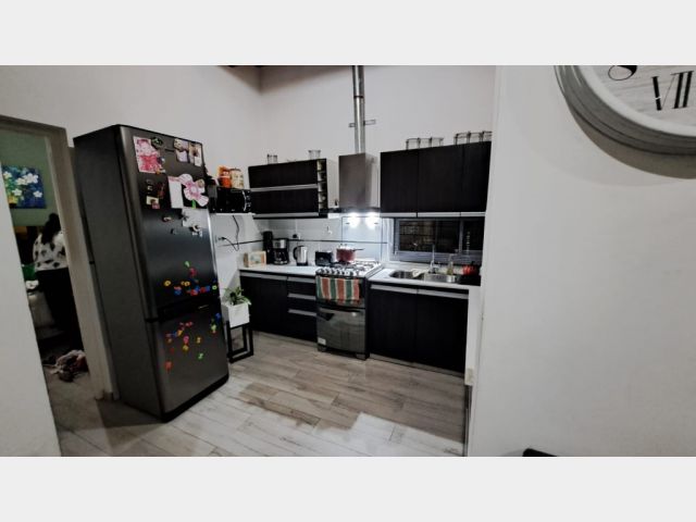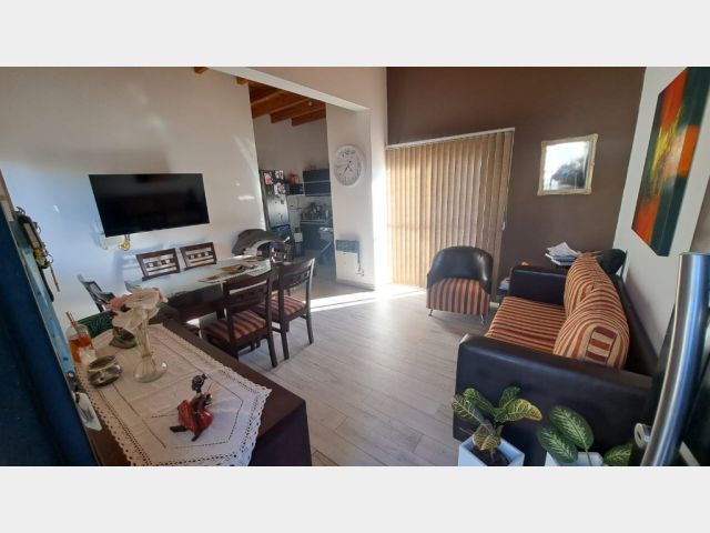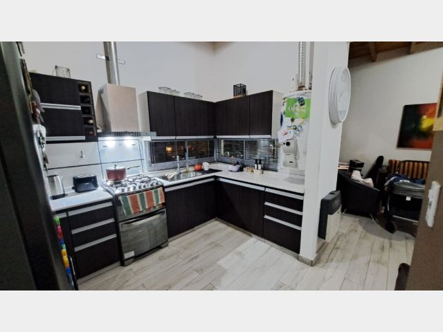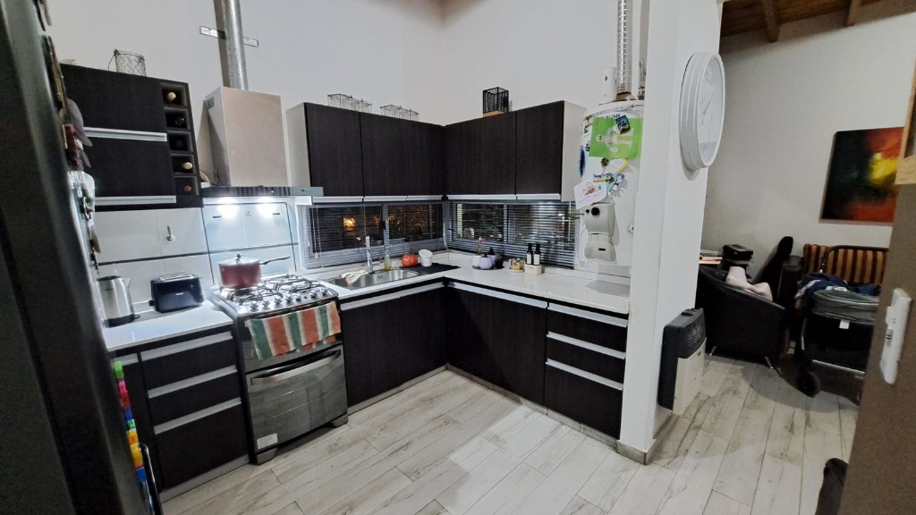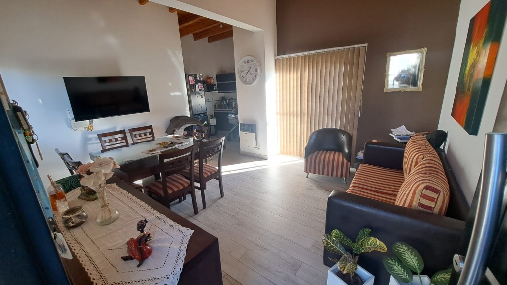 Descripcion: Amplio estar comedor con cocina semi integrada, ventanales que dan muy buena luz. Cocina: pose muebles con bajo mesada con mesada en piedra pulida, bacha con griferia monocomando, artefacto de cocina con campana salida al exterior, espacio para lavarropas, calefon termotanque, muebles alacenas.Dormitorios: dos dormitorios amplios, luminosos con ventanas y placar en melamina con puertas corredizas con cajoneras y estantes. Baño: con banitori con bacha y griferia monocomando, mampara de baño. Cochera frontal techada.