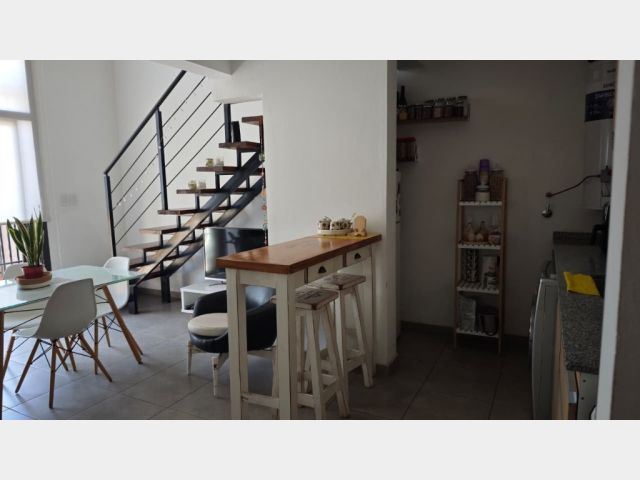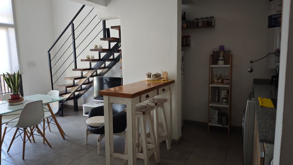 DEPARTAMENTO TIPO LOFT CON ENTREPISO DONDE SE ENCUENTRA EL DORMITORIO Y BAÑO PRINCIPAL, SE ACCEDE POR ESCALERA DE MADERA. ESTÁ UBICADO EN PLANTA ALTA POR ESCALERA, TIENE COCHERA PARA UN AUTO EN PLANTA BAJA. EL DEPARTAMENTO TIENE BALCÓN CON FRENTE A LA CALLE BAIGORRIA Y VISTA A LA MONTAÑA. EN LA PLANTA BAJA SE ENCUENTRA UN BAÑO TIPO TOILETTE, LA COCINA CON AMOBLAMMIENTOS Y TERMOTANQUE Y COCINA, NICHO PARA LA HELADERA Y CONEXION PARA LAVARROPAS. AMPLIA SALA PARA DESARROLLAR COMEDOR - ESTAR. VENTANAL CON REJAS PARA ACCEDER AL BALCÓN. EL COMPLEJO CUENTA CON UNA TERRAZA DE USO COMÚN. EL DEPARTAMENTO CUENTA CON LOS SERIVICIOS DE AGUA Y CLOACAS, ELECTRICIDAD Y GAS NATURAL.